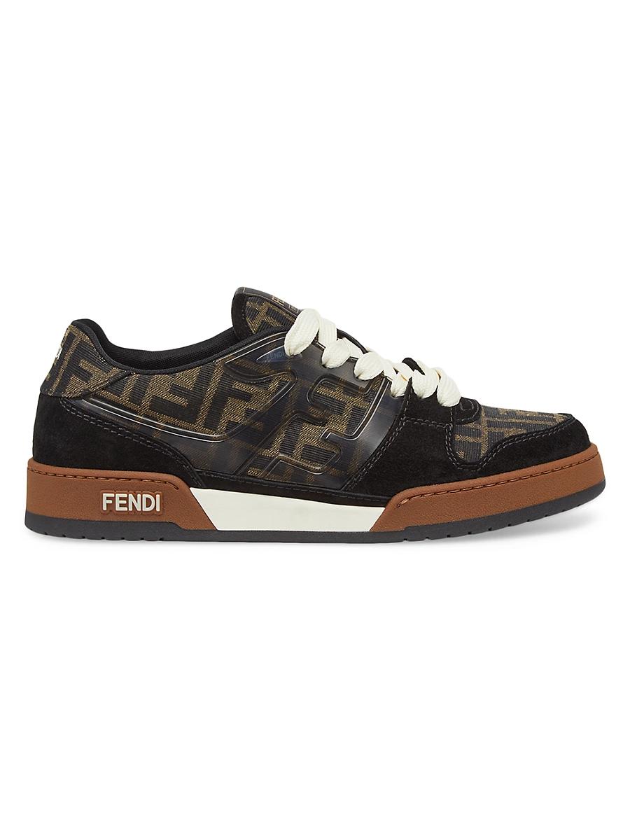 Crafted of leather, the Fendi Match sneakers are deisgned for a low-top silhouette and showcase the brands iconic FF logo print. Flaunting a transparent overlay, these shoes are complete with branded midsoles and tongues. Round toe Lace up Leather upper Rubber sole Made in Italy ABOUT THE BRAND The epitome of fine Italian craftsmanship, Fendi was founded in Rome in 1925 by Adele and Edoardo Fendi. Today, Creative Director Kim Jones continues the houses emphasis on quality, tradition, experimentation and creativity. Mens Shoes - Designer Shoes > Fendi > Saks Fifth Avenue > Barneys. Fendi. Color: Nero Tabacco. Size: 6.