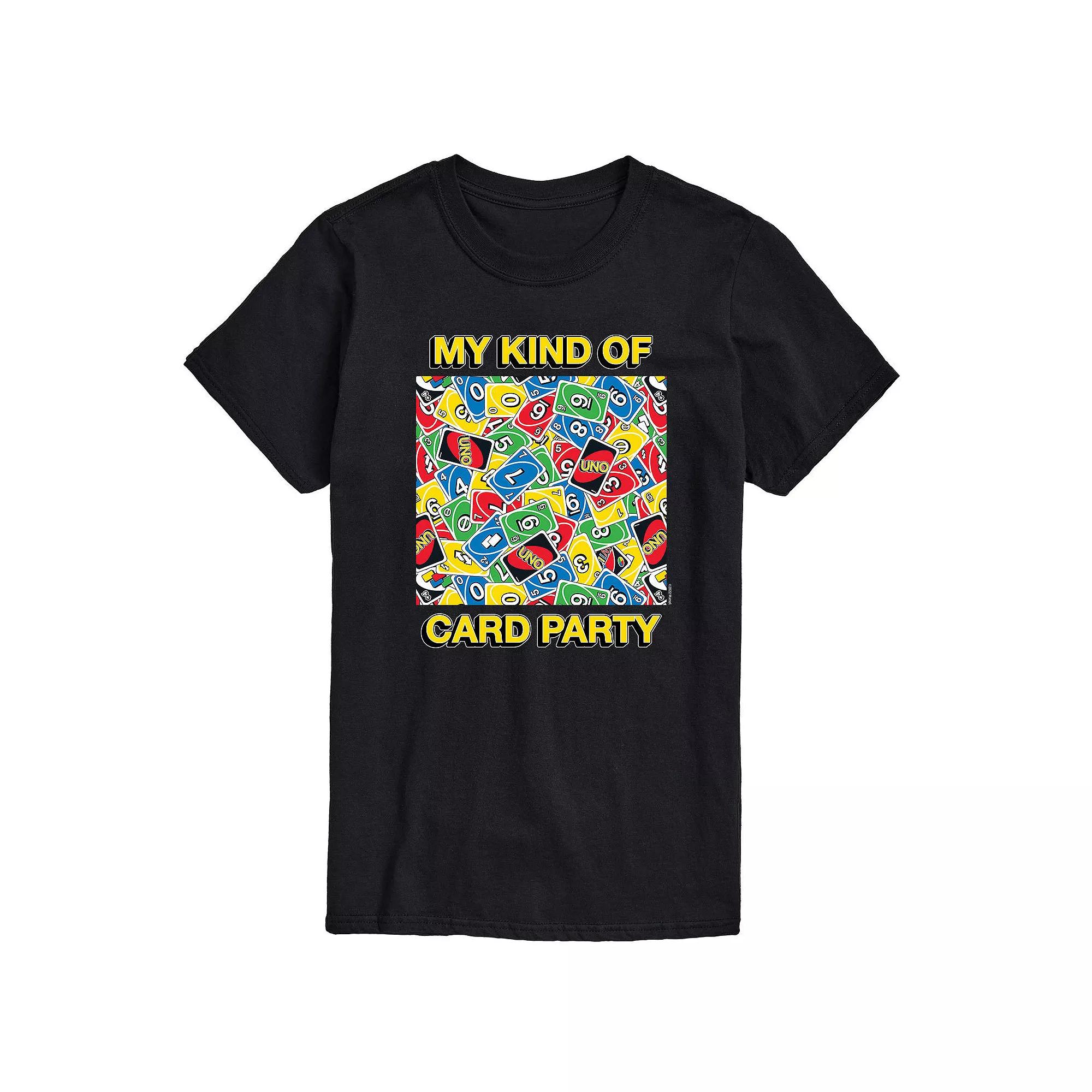 Get in on the action with this mens Mattel UNO My Kind Of Card Party tee.UNO and associated trademarks and trade dress are owned by, and used under license from, Mattel. 2022 Mattel. Get in on the action with this mens Mattel UNO My Kind Of Card Party tee. UNO and associated trademarks and trade dress are owned by, and used under license from, Mattel. 2022 Mattel.Click on this MENS GUIDE to find the perfect fit and more! Crewneck Short sleevesFABRIC & CARE Solid: cotton Heather: cotton, polyester Machine wash Imported Color: Black. Gender: male. Age Group: adult. Pattern: Graphic. Material: Cotton Blend.