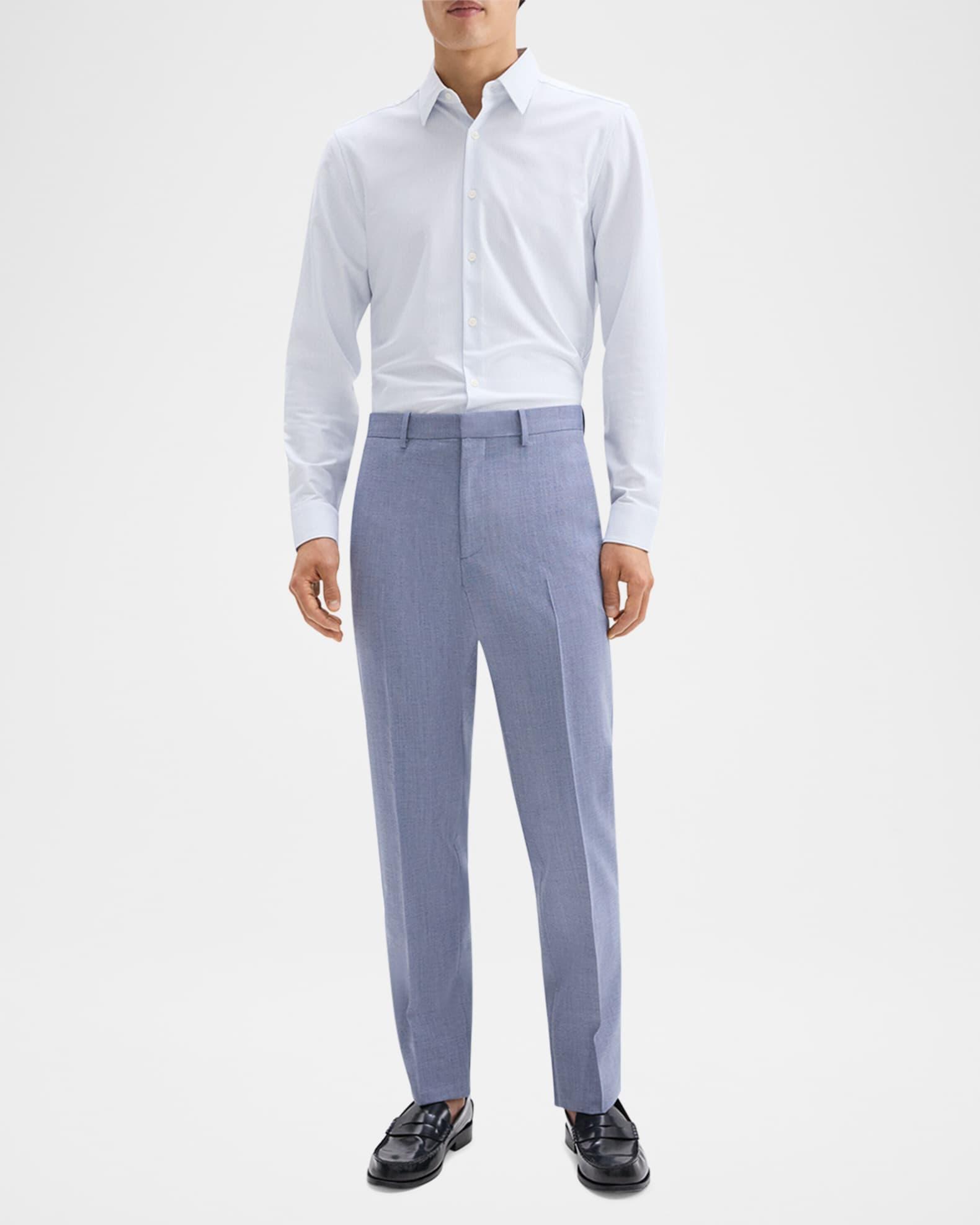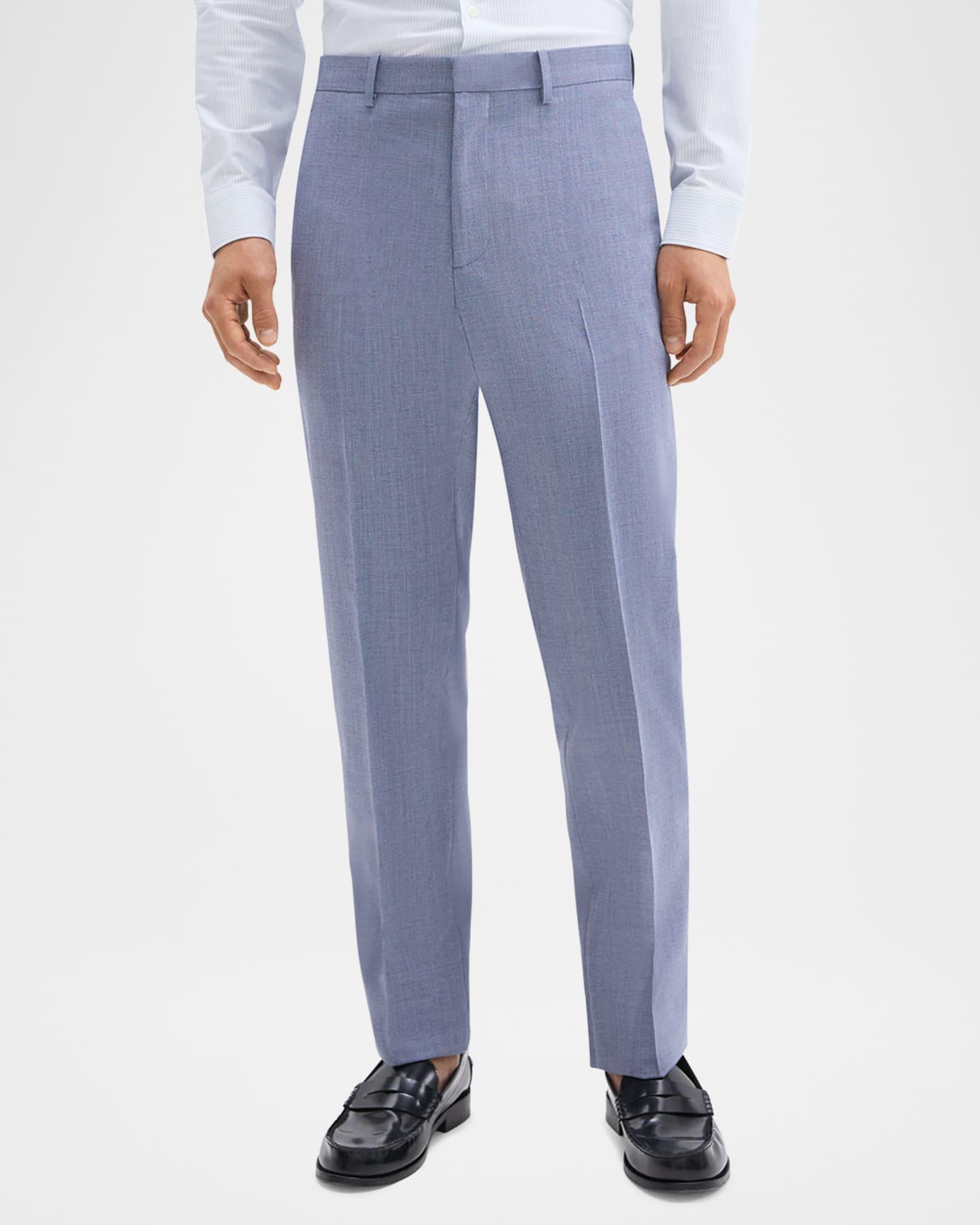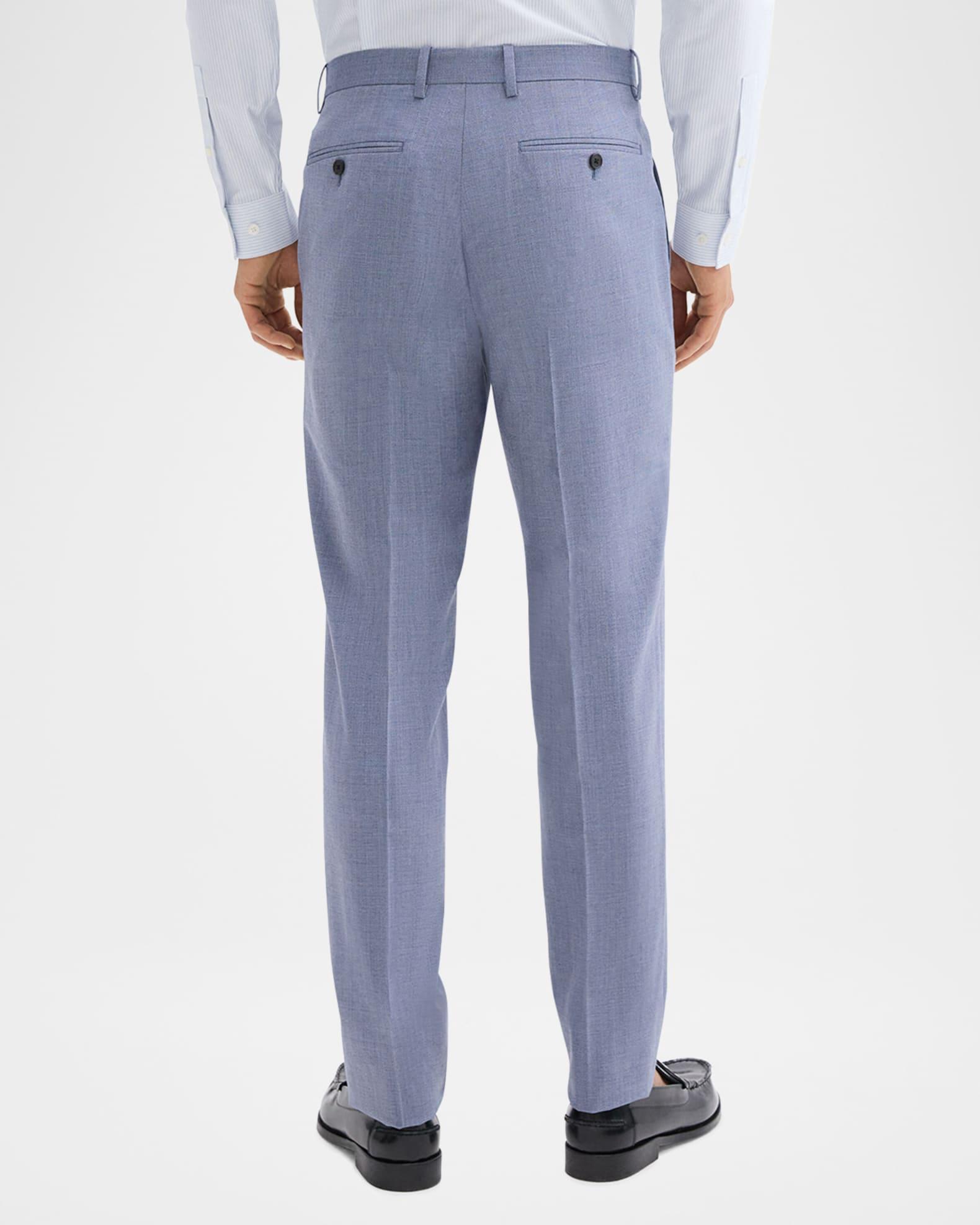 Theory "Mayer" trousers made from soft wool-nylon blend fabric Approx. measurements:  11.0" rise; 34" inseam; 14" outseam Regular rise Flat front Hook and zip closure Side slant pockets Buttoned back welt pockets Subtle pressed creases Full length Straight legs Virgin wool/nylon/polyamide Lining: Cotton Dry clean Imported