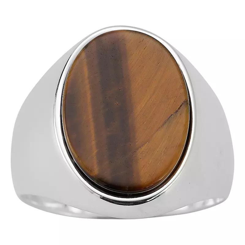 Accessorize with style with this Menster Sterling Silver Oval Gemstone Ring. Click on this JEWELRY & WATCHES GUIDE to learn about fit, styles, materials and more! Accessorize with style with this Menster Sterling Silver Oval Gemstone Ring. Click on this JEWELRY & WATCHES GUIDE to learn about fit, styles, materials and more! FEATURES Ring width: 0.2 in. - 0.8 in. Shank style: stackable Metal: sterling silver Plating: rhodium Finish: polished Packaging: velvety pouch Nickel free ImportedSTONE DETAILS Stone size: 0.5 in. x 0.7 in. Shape: oval Setting: glue/epoxy Gemstones may have been treated to enhance their appearance. Special care may be required. Please visit our Gemstone Treatment & Special Care Guide for more information. Size: 11. Color: Tiger Eye Sterling. Gender: male. Age Group: adult.