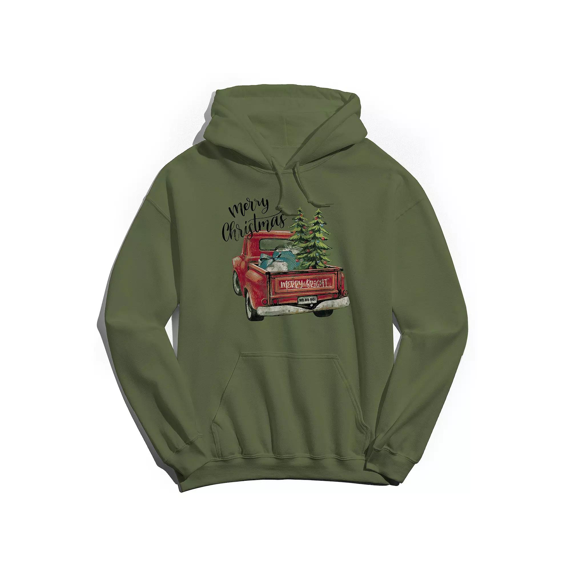 Celebrate the holidays with this fun Mens Merry Chistmas Hoodie. Celebrate the holidays with this fun Mens Merry Chistmas Hoodie. FEATURES Drawstring hood Ribbed hemline Long sleeveFABRIC & CARE Cotton Machine wash Imported Color: Dark Green. Gender: male. Age Group: adult. Material: Fleece|Cotton.