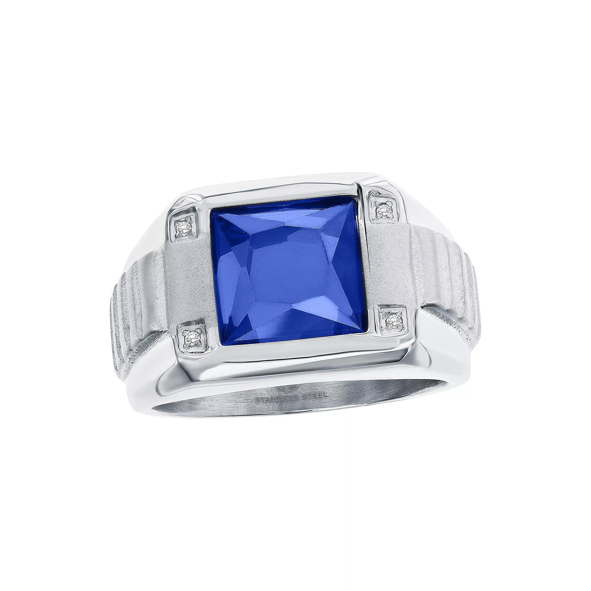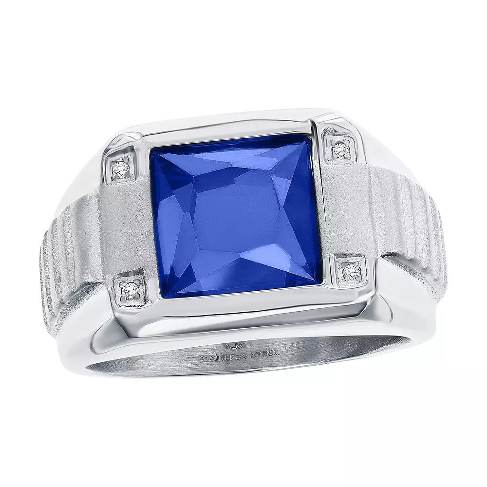 Youll love the bold style of this Mens Metallo Steel Genuine Blue Spinel Square Cubic Zirconia Ring. Click on this JEWELRY & WATCHES GUIDE to learn about fit, styles, materials and more! Youll love the bold style of this Mens Metallo Steel Genuine Blue Spinel Square Cubic Zirconia Ring. Click on this JEWELRY & WATCHES GUIDE to learn about fit, styles, materials and more! FEATURES 14mm ring width Shank style: reverse tapered Band fit: comfort fit Nickel free Metal: stainless steel,Metal: tungsten carbide Plating: ion plated Finish: polished Packaging: boxed ImportedSTONE DETAILS Stone type: spinel 6x6mm Shape: rose cut,Shape: round brilliant,Shape: square Setting: bezel Size: 11. Gender: male. Age Group: adult.