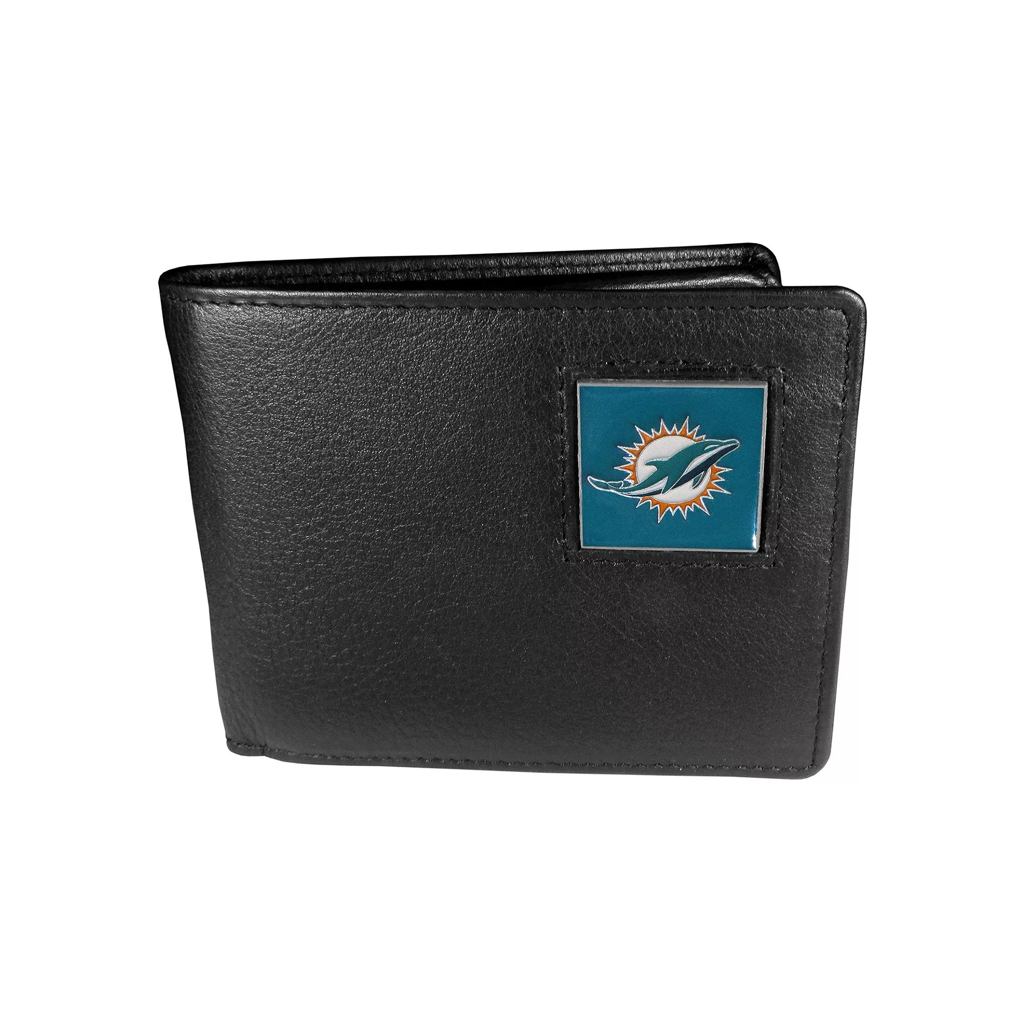 Add some value to your fan gear with this men's Miami Dolphins bifold wallet. 8 card slots Billfold pocket Flip out windowed ID slot Boxed for gift giving 6" x 6" x 1.25" Genuine fine grain leather Spot clean Imported Shop our full assortment of Miami Dolphins items here. When you’re a fan, you’re family! Size: One Size. Color: Black. Gender: male. Age Group: adult.