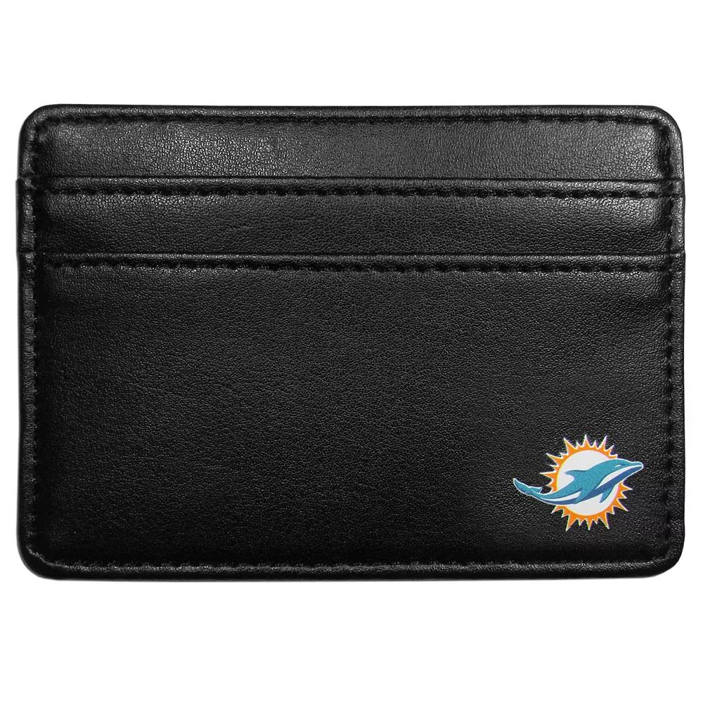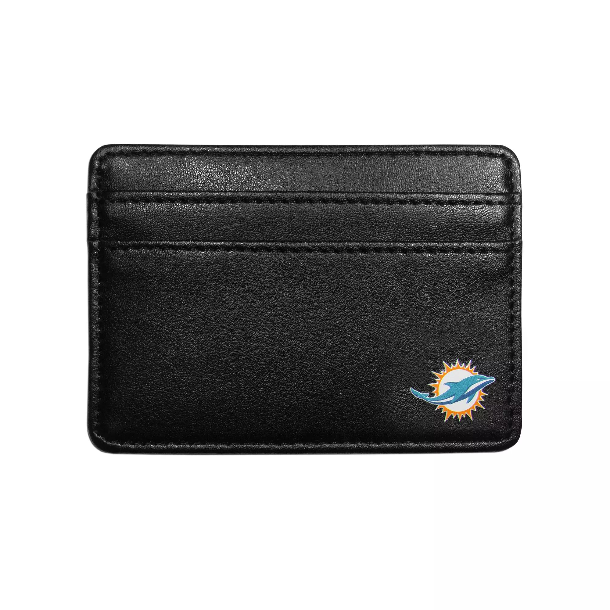 Miami Dolphins Keep your essentials in this slim and spirited Miami Dolphins wallet. 2 slots for credit cards and an inner pocket to hold cash Expertly silk screened team logo Classy leather-like finish Super slim design Officially licensedFABRIC & CARE Polyurethane Wipe clean Imported WARNING: Cancer and Reproductive Harm - www.P65Warnings.ca.gov. Siskiyous products meet or exceed all Federal Safety guidelines. Warning -- Not intended for use by children under 12. Siskiyou Sports www.siskiyougifts.com 3W x 4L x .4H Keep your essentials in this slim and spirited Miami Dolphins wallet. Unbranded Keep your essentials in this slim and spirited Miami Dolphins wallet. Size: One Size. Color: Black. Gender: male. Age Group: adult.