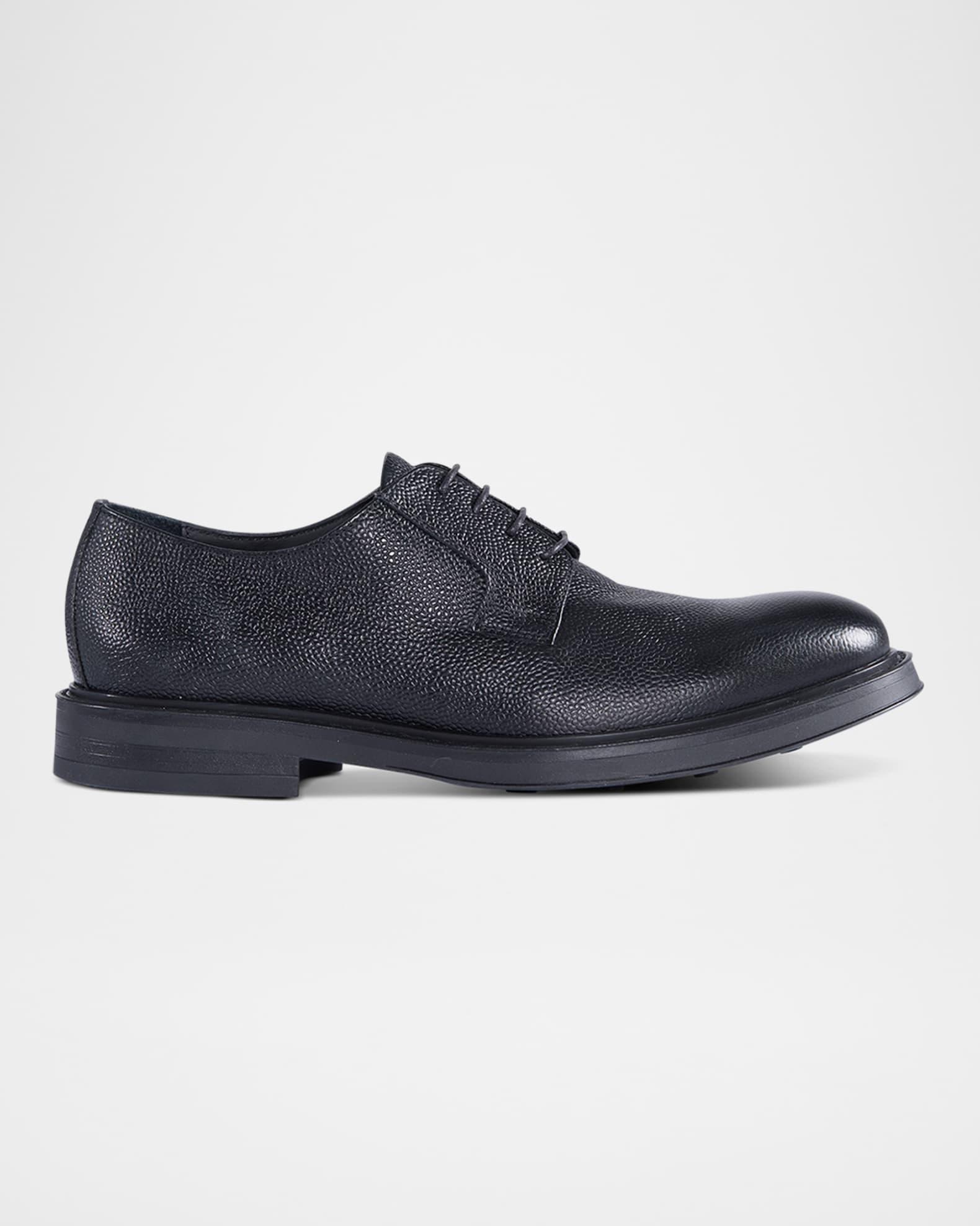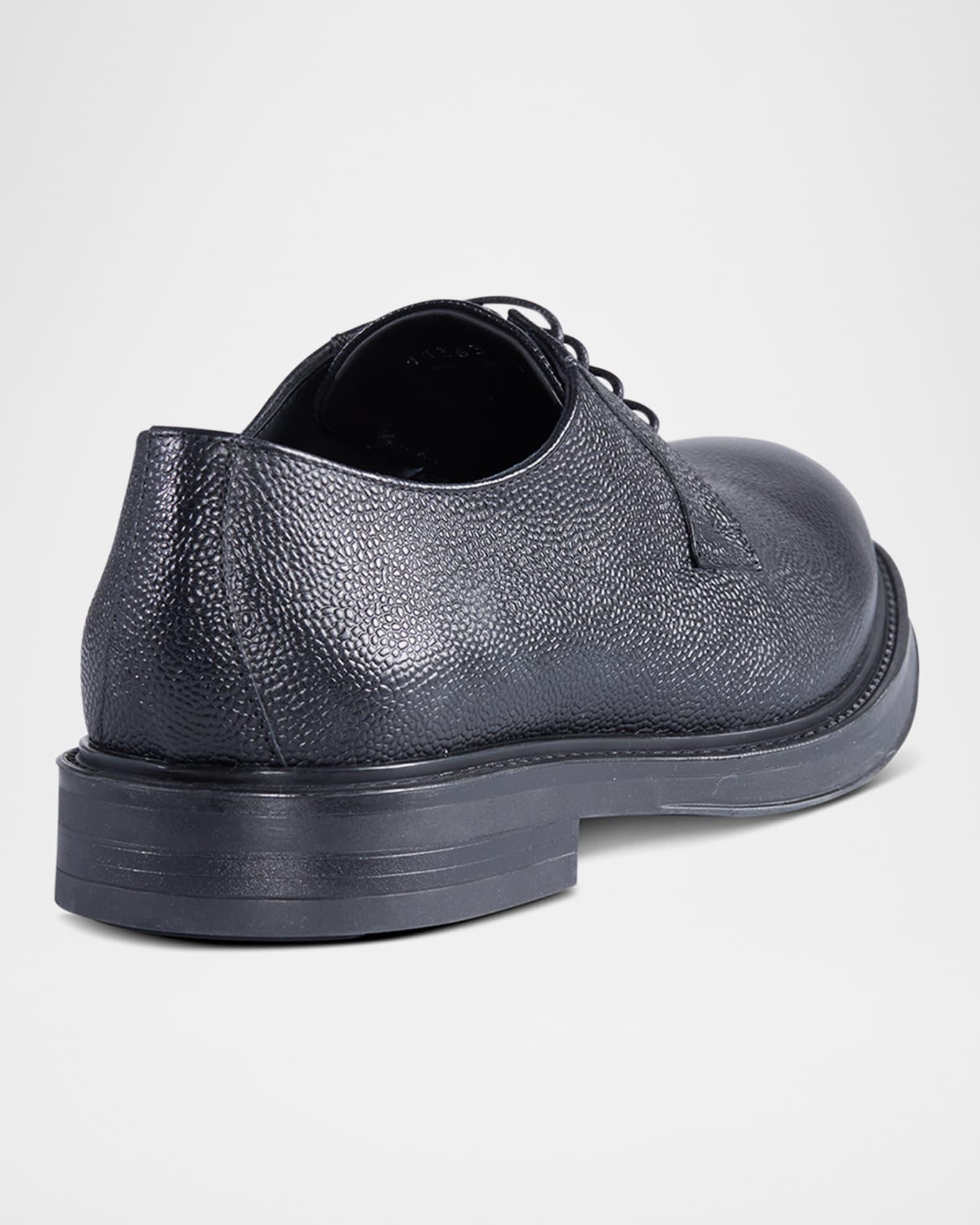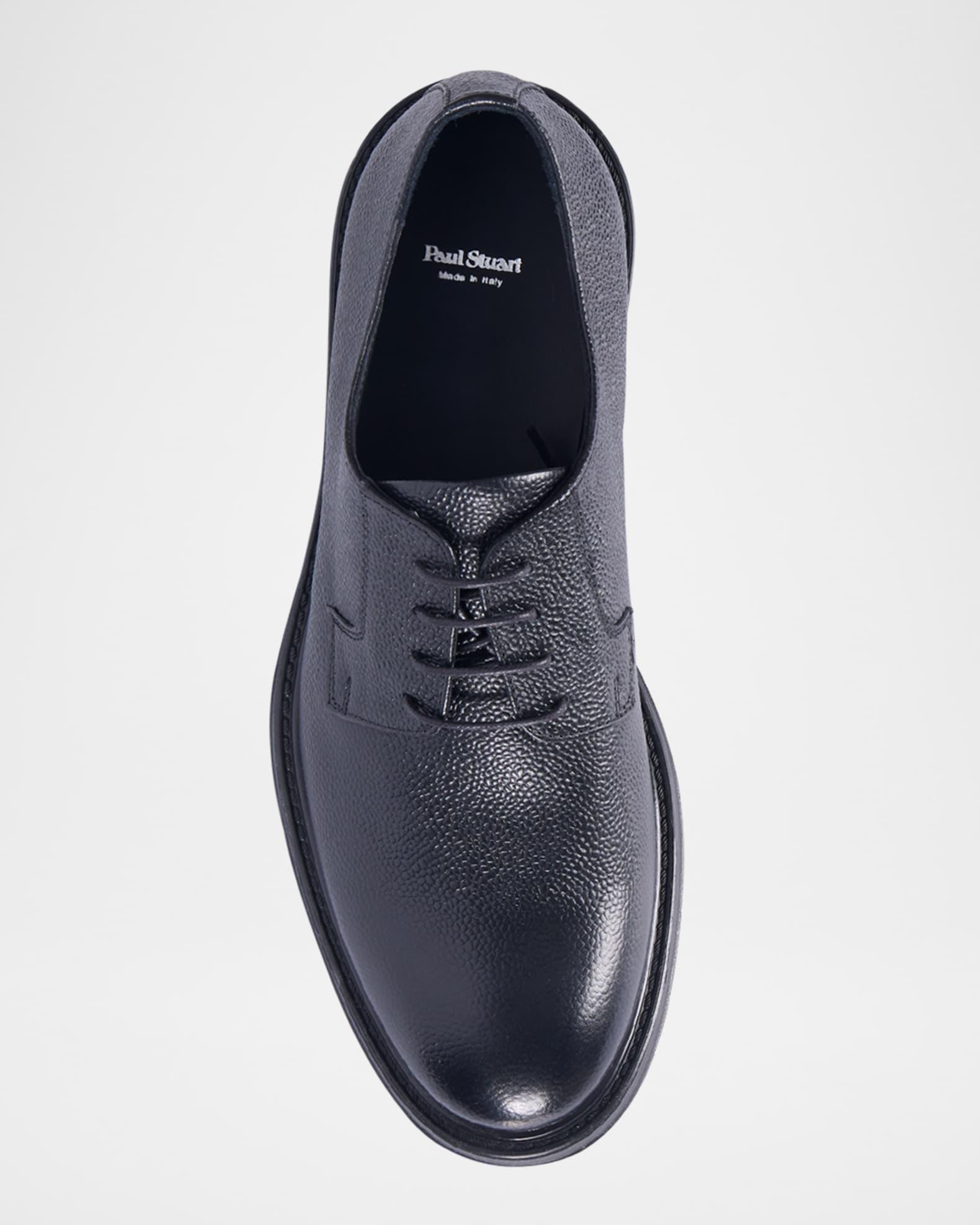 Paul Stuart "Michael" derby shoes in pebbled calf leather Stacked heel Round toe Lace-up vamp Leather lining Rubber outsole Spot clean Made in Italy Proposition 65 warning for California residents