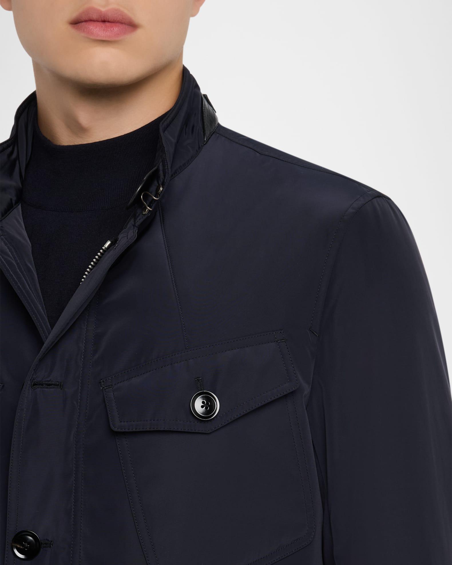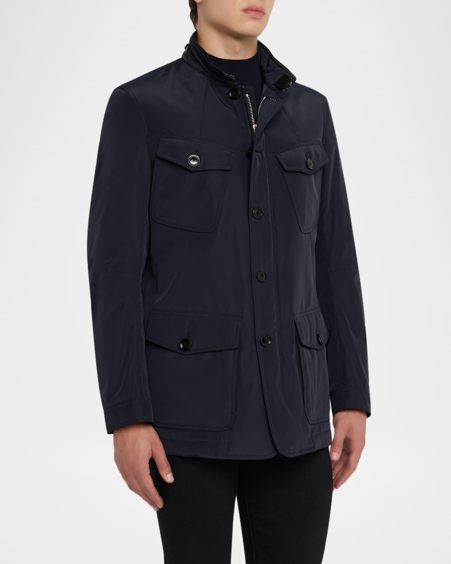 TOM FORD military jacket highlighting four functional flap pockets on the front Stand collar Throat latch Full-zip front Button fastenings Long sleeves Single-button cuffs Single-vented back Polyester/linen Fully lined Professional cleaning recommended, wash inside out Made in Italy