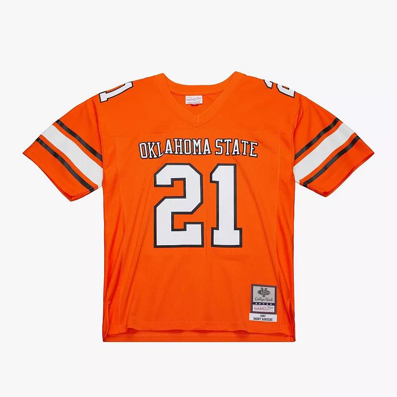 Represent one of your all-time favorite Oklahoma State Cowboys players with this Barry Sanders 1987 Replica Jersey. Its fabric ensures breathability and comfortability. The throwback details are inspired by what the Oklahoma State Cowboys wore in days gone by. Every stitch on this jersey is tailored to exact team specifications delivering outstanding quality and a premium feel.Represent one of your all-time favorite Oklahoma State Cowboys players with this Barry Sanders 1987 Replica Jersey. Its fabric ensures breathability and comfortability. The throwback details are inspired by what the Oklahoma State Cowboys wore in days gone by. Every stitch on this jersey is tailored to exact team specifications delivering outstanding quality and a premium feel.PRODUCT FEATURESShort sleevesMachine wash, line dryOfficially licensedBrand: Mitchell & NessFabric applique sewn onScreen print graphicsImportedWoven tags at bottom hemMaterial: 100% PolyesterV-neckEmbroidered twill graphicsSide splits at waist hemReplicaMesh fabric Size: 4XL. Color: Orange. Gender: male. Age Group: adult. Material: Cotton.