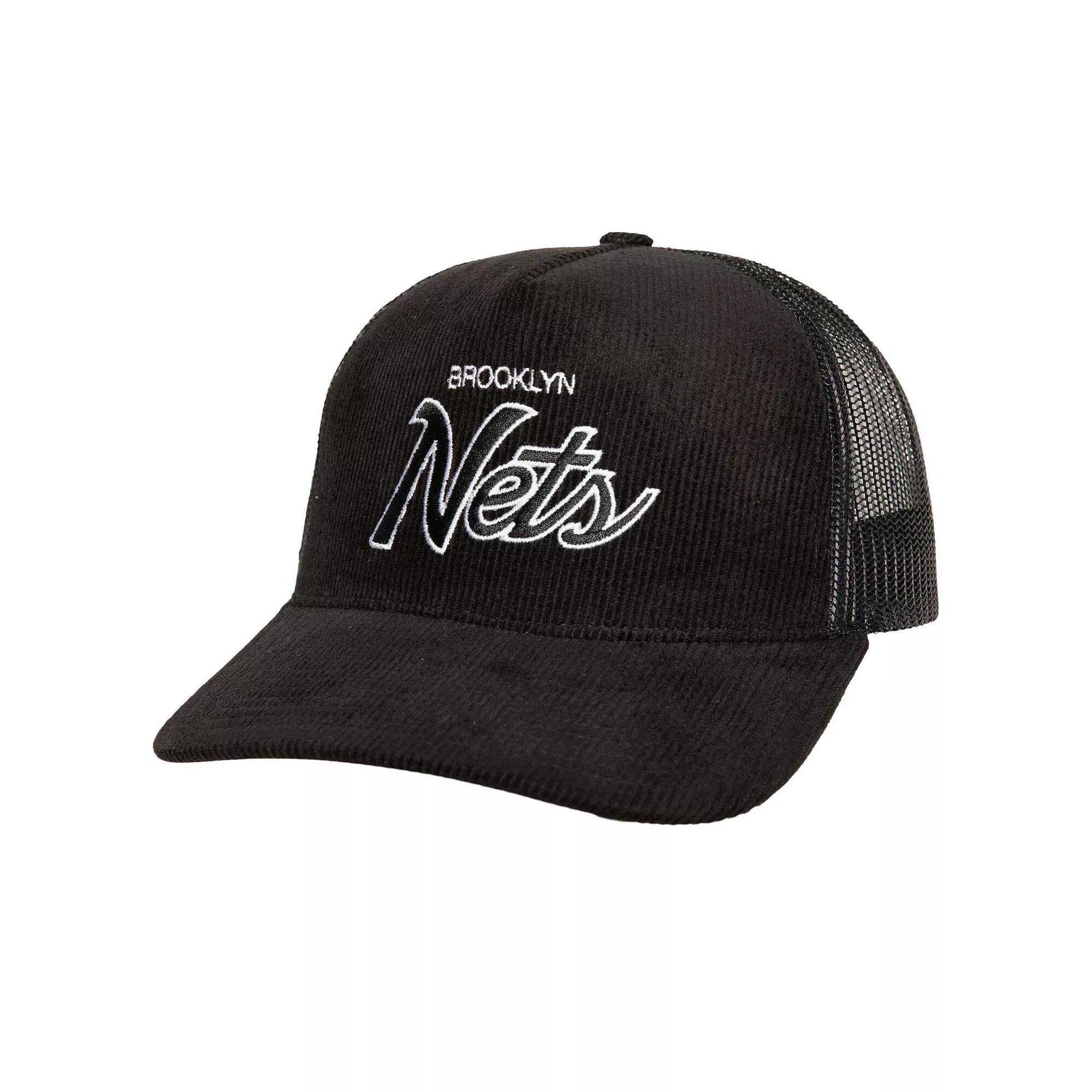 Showcase your passion for your Nfl favorites with this Brooklyn Nets Times Up Script trucker hat from Mitchell & Ness. It features emphatic embroidered Brooklyn Nets graphics on corduroy fabric for a distinct display that makes your enthusiasm for the team clear. The snap closure easily adjusts to ensures the perfect fit, while the mesh paneling invites a welcome breeze.