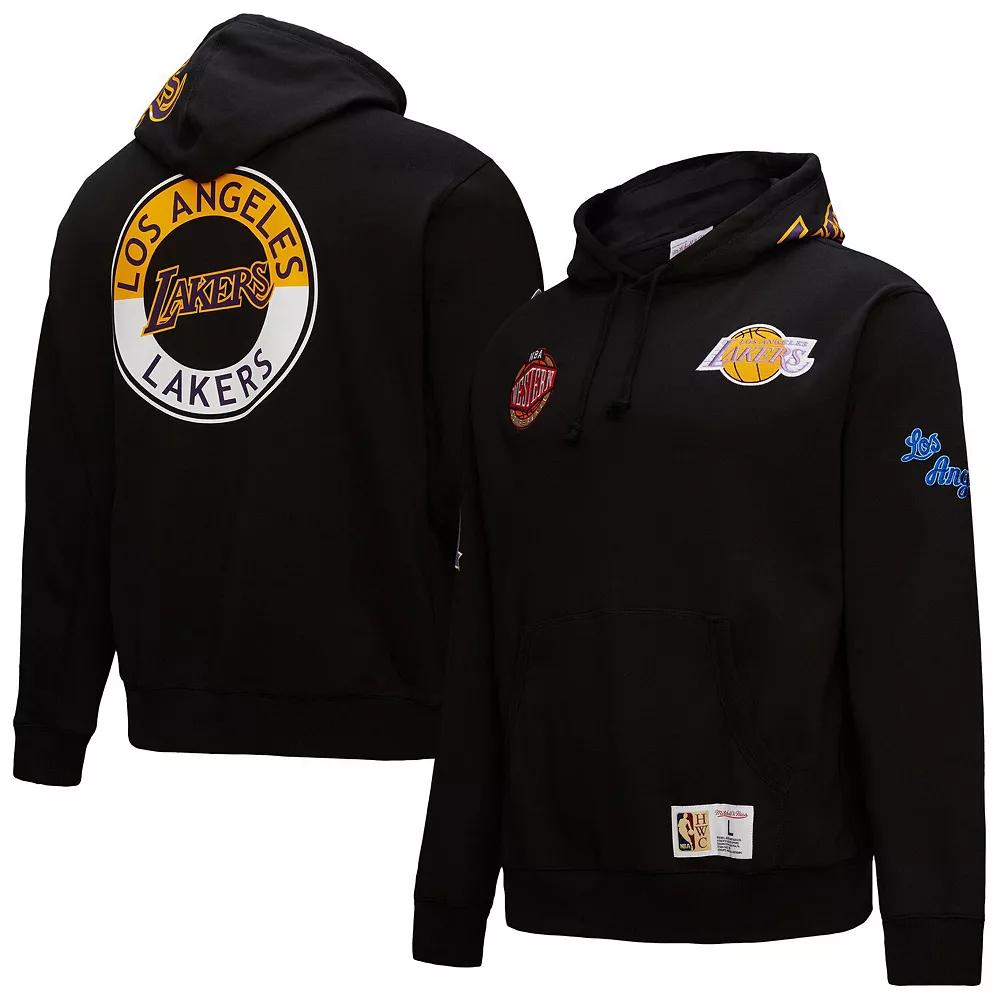 Channel the vintage vibes of Los Angeles Lakers basketball with this Mitchell & Ness Hardwood Classics Blackout Collection Pullover Hoodie. This Los Angeles Lakers hoodie features embroidered throwback team logo patches and printed team details for an authentic look. A soft fleece lining adds cozy warmth, making this hoodie perfect for moderate temperatures.Channel the vintage vibes of Los Angeles Lakers basketball with this Mitchell & Ness Hardwood Classics Blackout Collection Pullover Hoodie. This Los Angeles Lakers hoodie features embroidered throwback team logo patches and printed team details for an authentic look. A soft fleece lining adds cozy warmth, making this hoodie perfect for moderate temperatures.PRODUCT FEATURESImportedMachine wash, tumble dry lowFront pouch pocketBrand: Mitchell & NessPulloverLong sleeveMaterial: 80% Cotton/20% PolyesterEmbroidered throwback team logo patchesOfficially licensedMidweight hoodie suitable for moderate temperaturesSoft fleece lining adds cozy warmthPrinted team detailsWoven jock tag at hemHooded Gender: male. Age Group: adult.