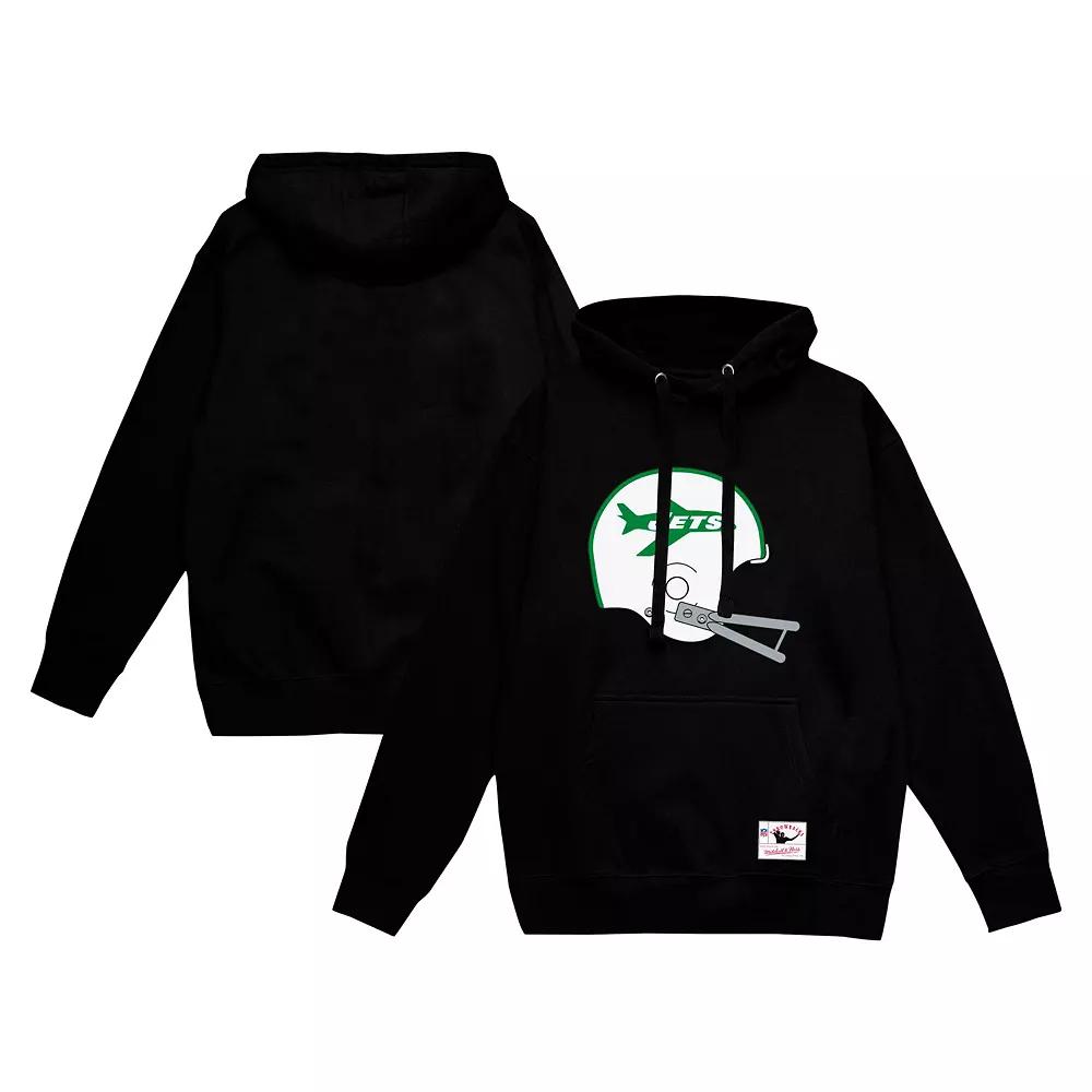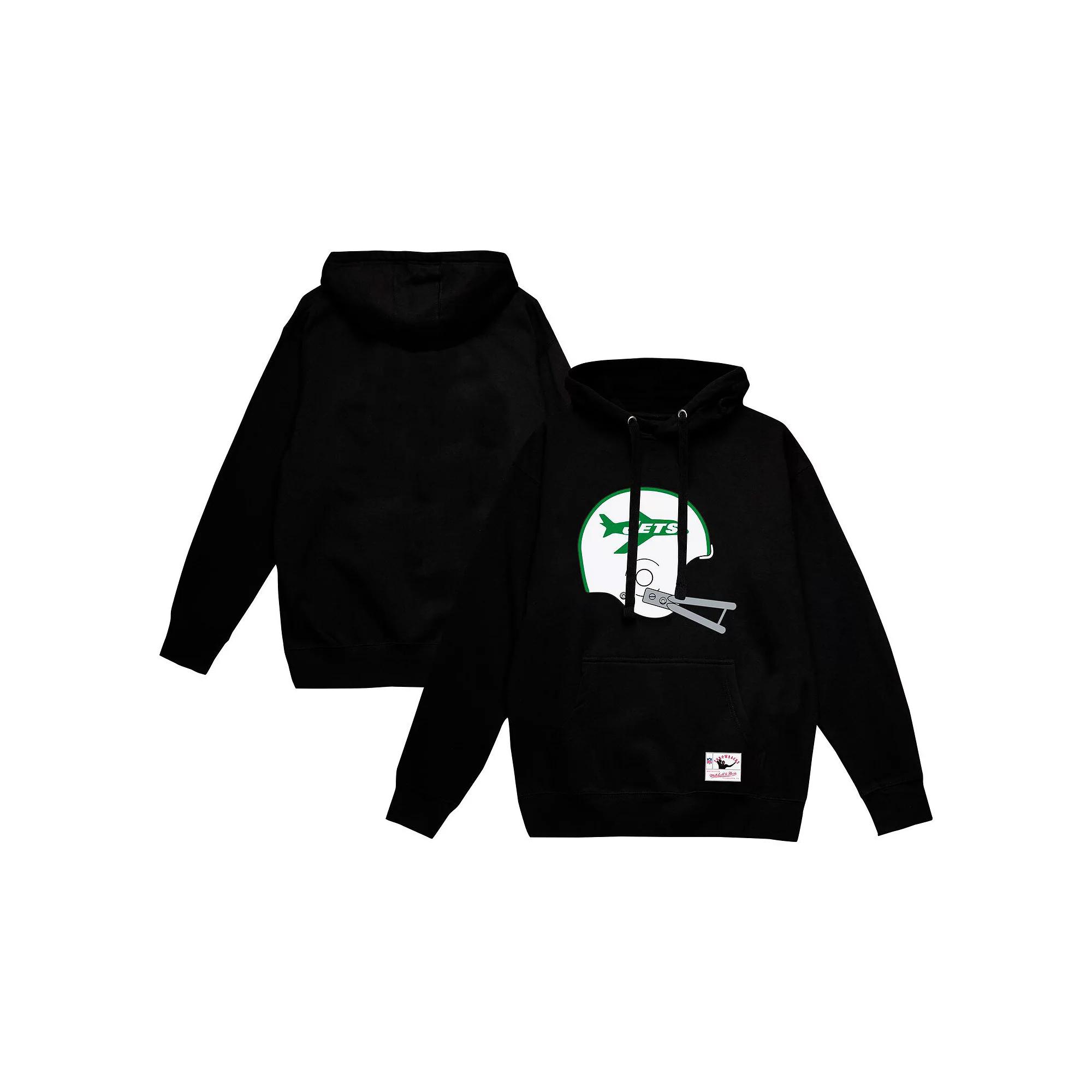Channel vintage New York Jets style with this Mitchell & Ness Helmet Logo Vintage Pullover Hoodie. The fleece lining provides added warmth and a soft feel, ensuring cozy comfort on chilly game days. A screen-printed helmet with the team logo on the front proudly showcases your Jets pride.Channel vintage New York Jets style with this Mitchell & Ness Helmet Logo Vintage Pullover Hoodie. The fleece lining provides added warmth and a soft feel, ensuring cozy comfort on chilly game days. A screen-printed helmet with the team logo on the front proudly showcases your Jets pride.PRODUCT FEATURESScreen print helmet with team logo on frontMachine wash, tumble dry lowLong sleeveBrand: Mitchell & NessHoodedImportedWoven jock tag on pouch pocketOfficially licensedMaterial: 65% Cotton/35% PolyesterMidweight sweatshirt suitable for moderate temperaturesFleece lining provides added warmth and a soft feelPulloverFront pouch pocket for hands-free storage and extra layer of comfort Color: Black. Gender: male. Age Group: adult.