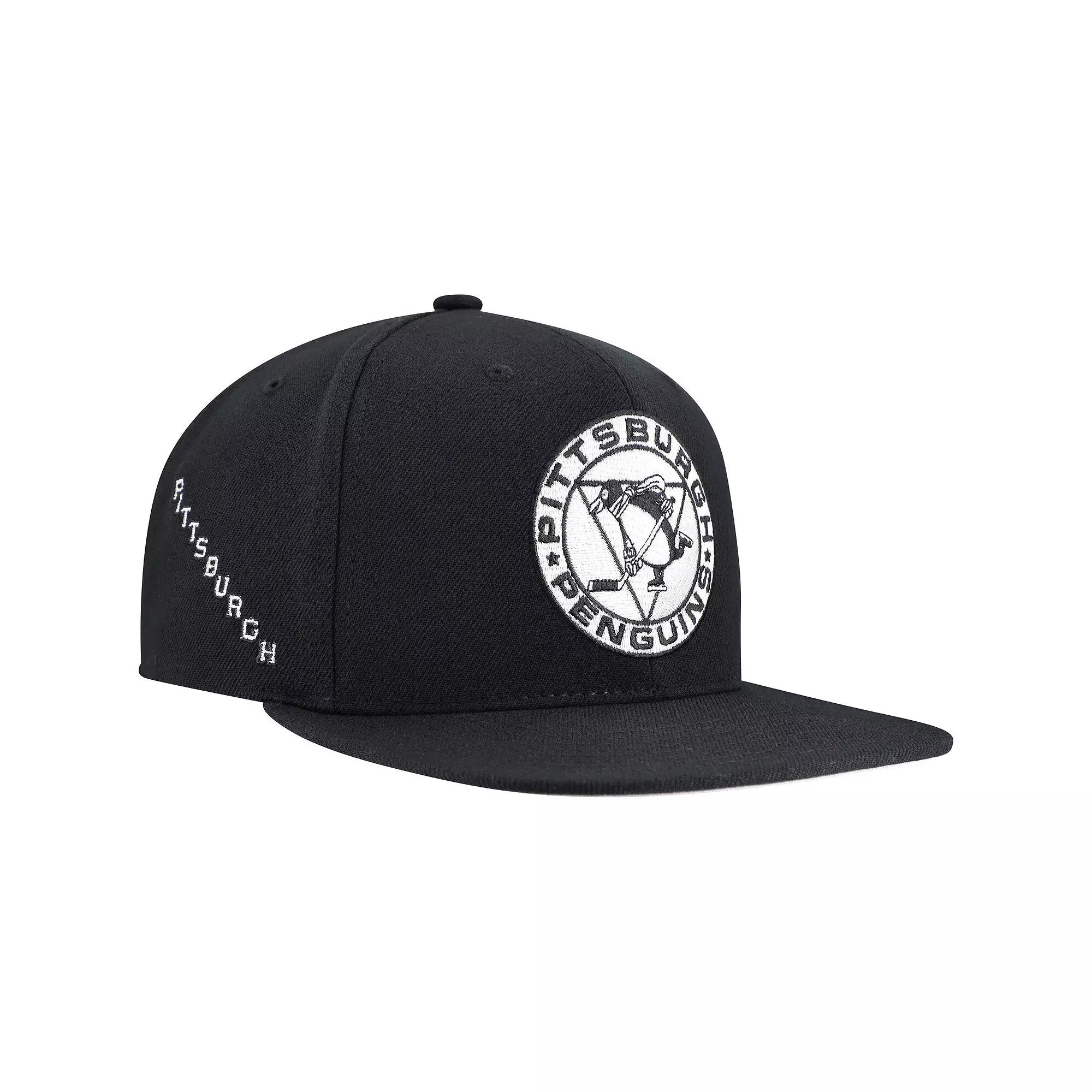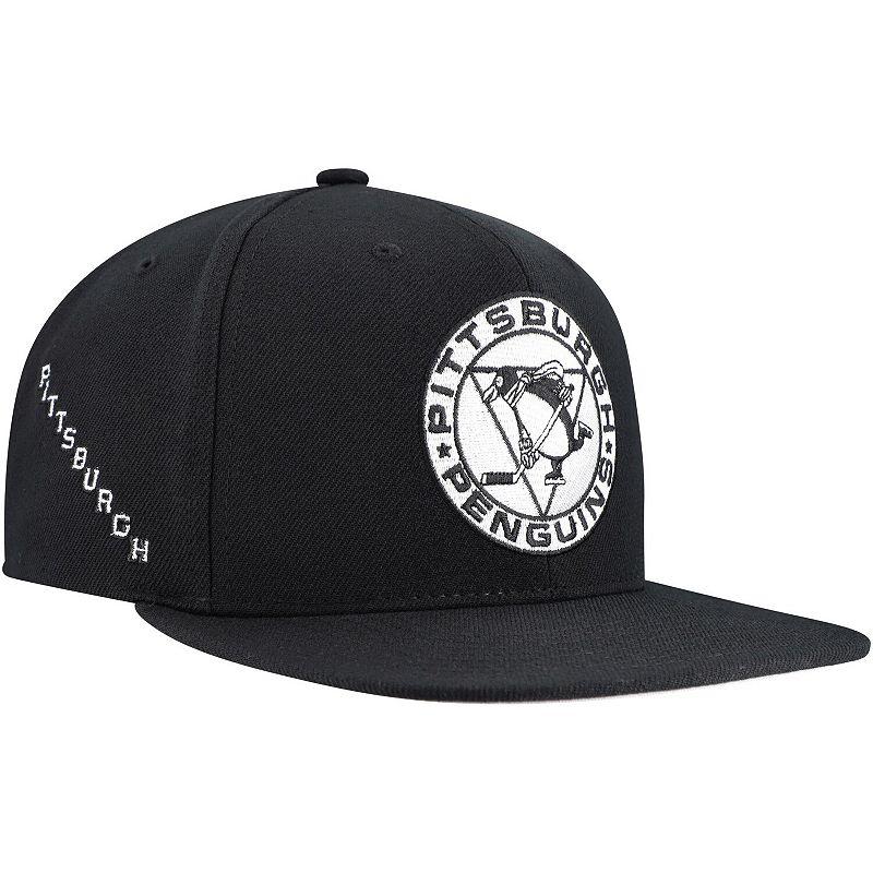Complete your Pittsburgh Penguins game day look with this Team Snapback Hat from Mitchell & Ness . This stylish hat features a classic six-panel design with embroidered Pittsburgh Penguins graphics, adding a touch of team pride to your everyday look. The high crown and structured fit provide a modern and comfortable feel, while the snapback closure ensures a secure and adjustable fit.Complete your Pittsburgh Penguins game day look with this Team Snapback Hat from Mitchell & Ness . This stylish hat features a classic six-panel design with embroidered Pittsburgh Penguins graphics, adding a touch of team pride to your everyday look. The high crown and structured fit provide a modern and comfortable feel, while the snapback closure ensures a secure and adjustable fit.PRODUCT FEATURESStructured fitFlat billHigh CrownOfficially licensedSnapbackSix panels with eyeletsDry clean onlyEmbroidered graphics with raised detailsContrast-color undervisorMaterial: 100% PolyesterImportedBrand: Mitchell & NessOne size fits most Size: One Size. Color: Black. Gender: male. Age Group: adult.