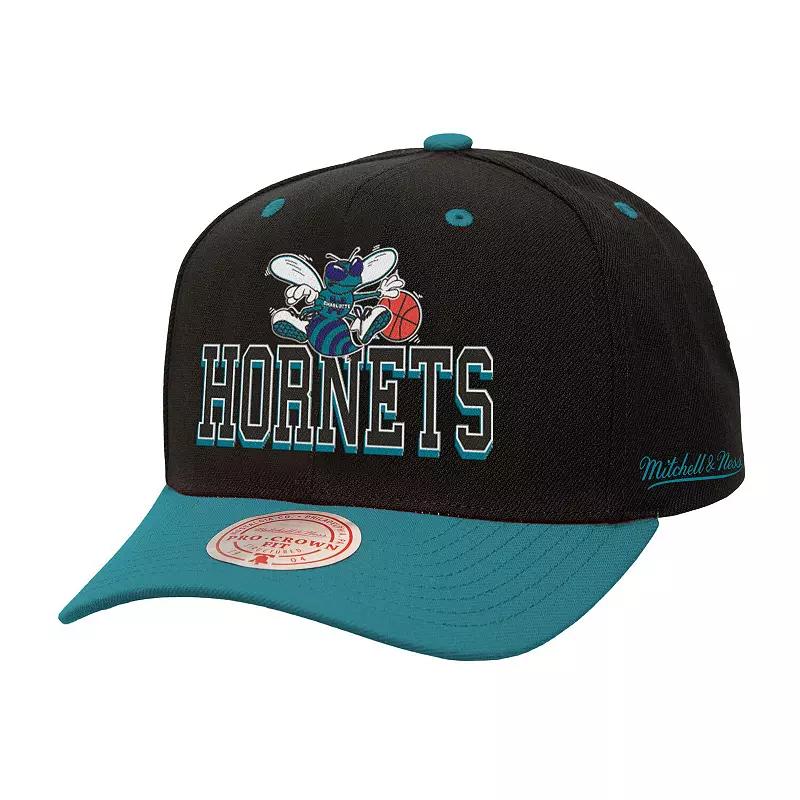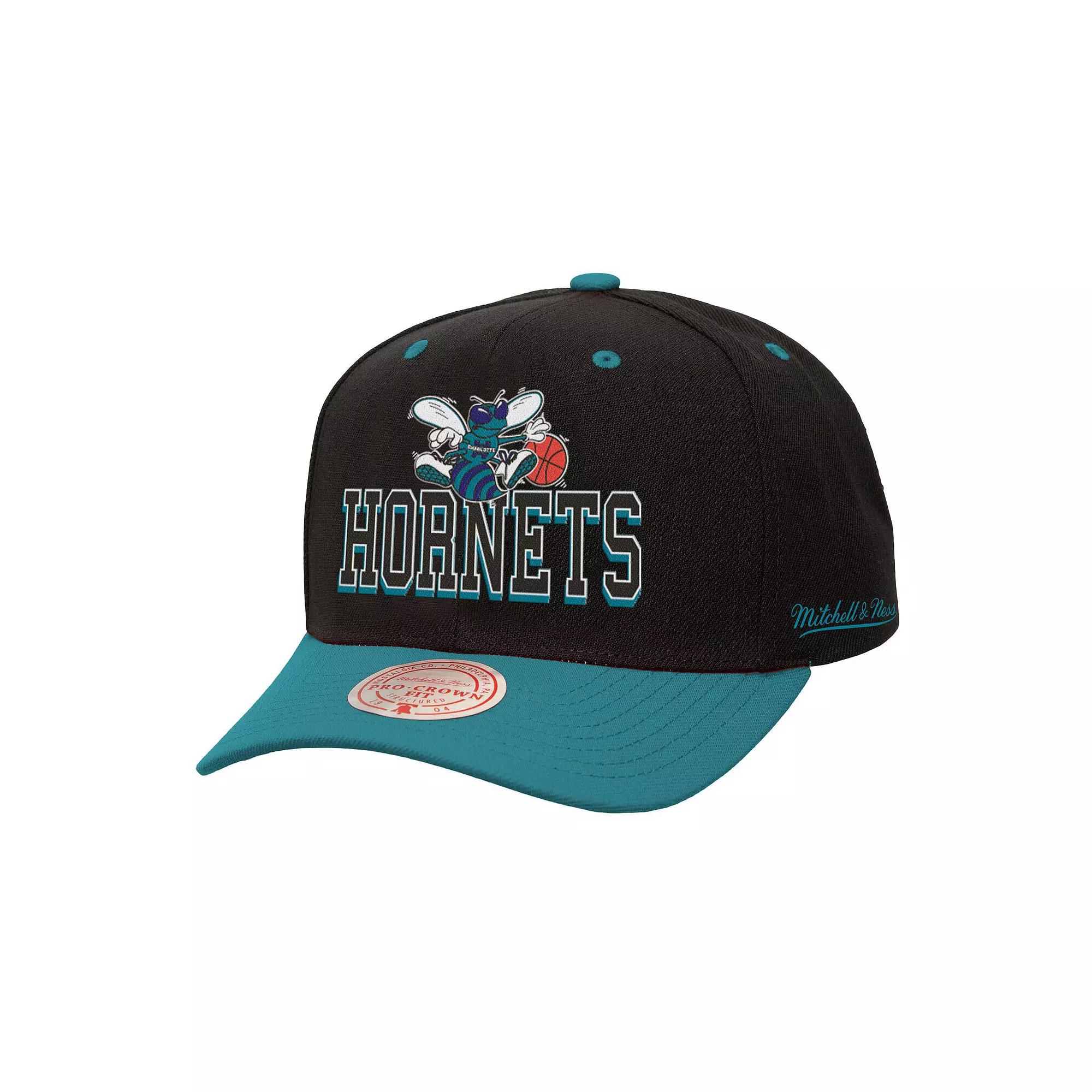 Illustrate your die-hard devotion to the Charlotte Hornets by wearing this Mitchell & Ness Backside Script Two-Tone Pro Crown Adjustable Hat. This incredible hat features bold Charlotte Hornets graphics embroidered on the crown and back. The snap closure ensures a perfect fit each time you put it on.Illustrate your die-hard devotion to the Charlotte Hornets by wearing this Mitchell & Ness Backside Script Two-Tone Pro Crown Adjustable Hat. This incredible hat features bold Charlotte Hornets graphics embroidered on the crown and back. The snap closure ensures a perfect fit each time you put it on.PRODUCT FEATURESSix panels with eyeletsMaterial: 100% PolyesterWipe clean with a damp clothMid CrownOfficially licensedStructured fitCurved billThe Pro Crown Fit is a streetwear essential with its six-panel design and rounded crownEmbroidered graphics with raised detailsSnap ClosureImportedContrast-color undervisorBrand: Mitchell & NessOne size fits most Size: One Size. Color: Chr Black. Gender: male. Age Group: adult. Material: COTTON.
