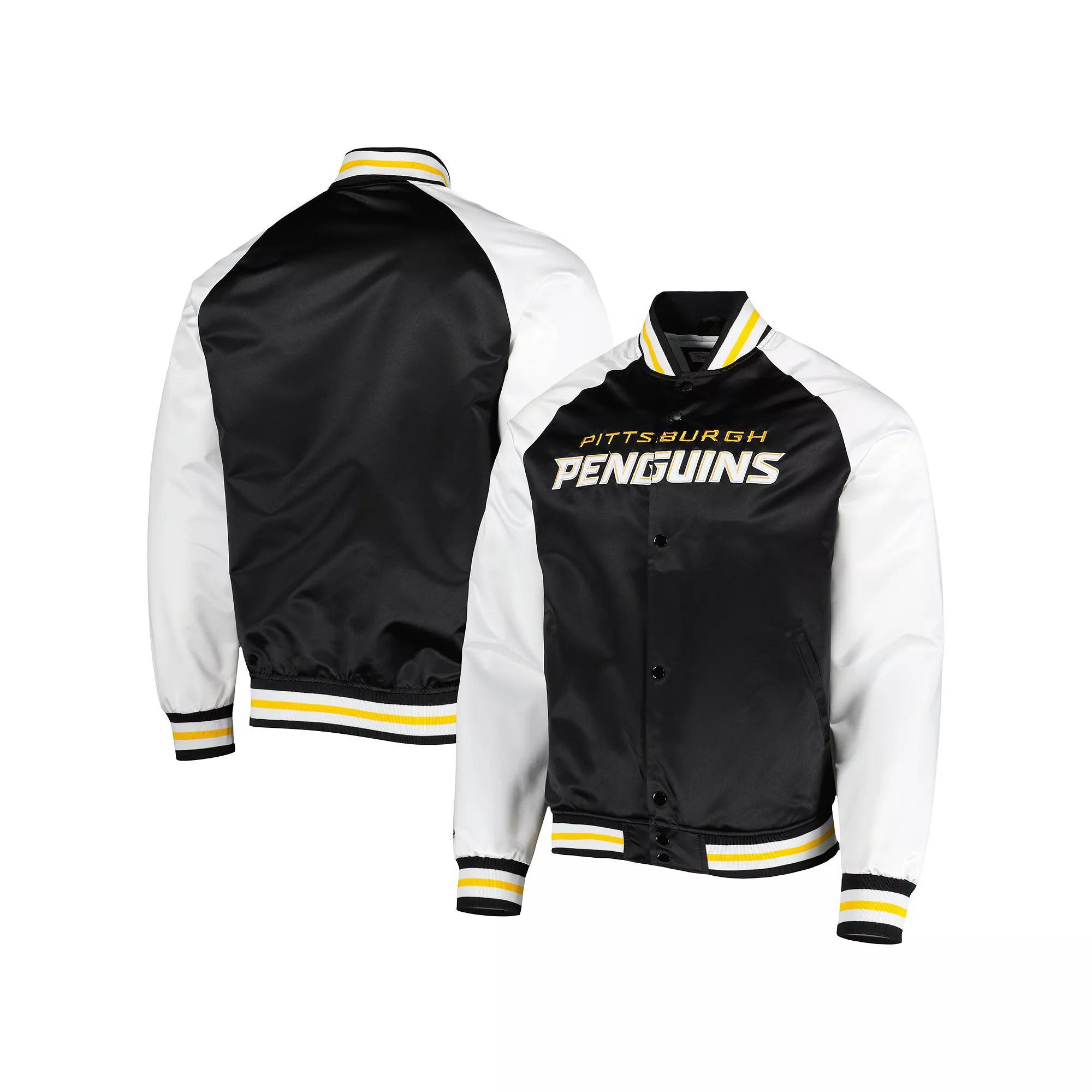 Give your game day outfit added style with this Primetime full-snap jacket by Mitchell & Ness. Its distinct Pittsburgh Penguins graphics and satin finish make for a stylish layer. A stand up collar supplies a throwback style as well as extra coverage.