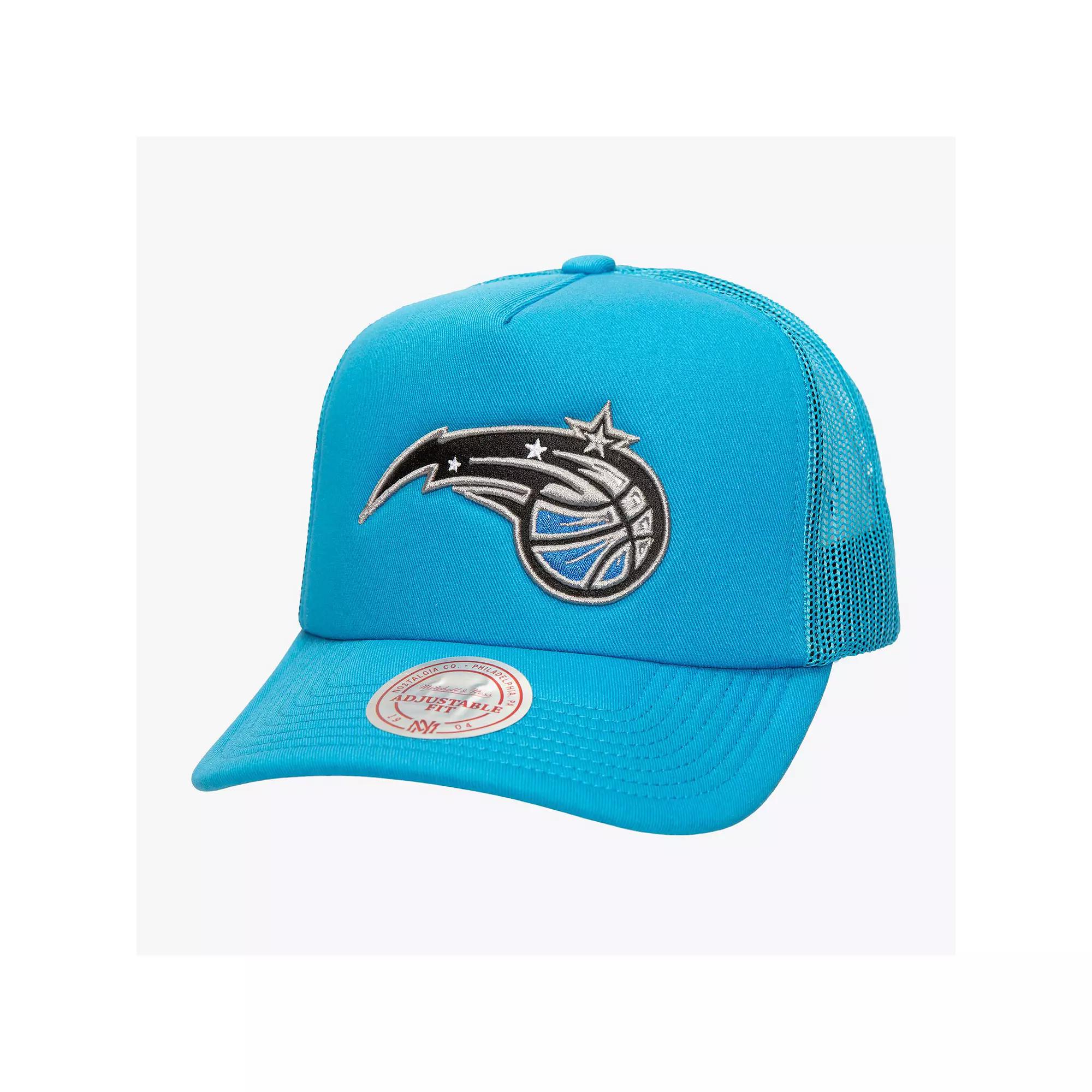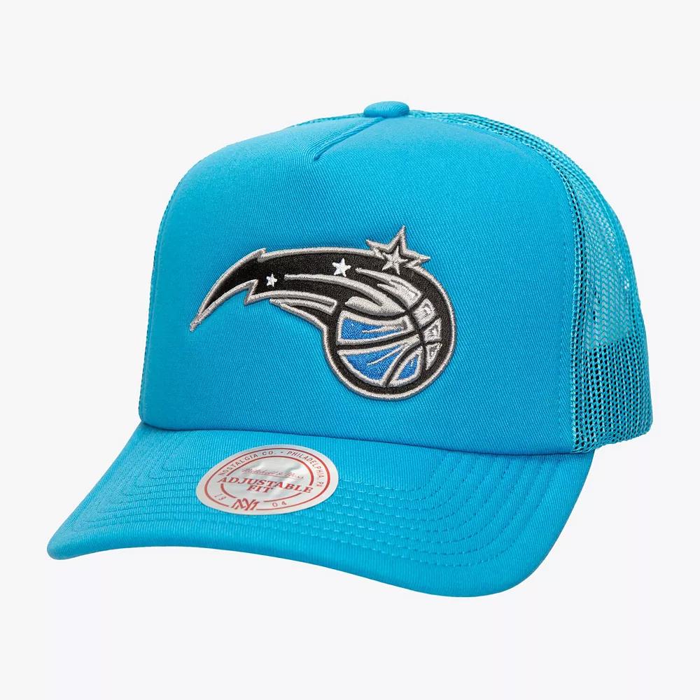 Rock your Orlando Magic fandom with this Mitchell & Ness Core Evergreen OTC Trucker Adjustable Hat. This Orlando Magic hat is built with a brushed cotton and foam-backed front and top visor, offering a structured, high-crown fit and a pre-curved brim. The team logo is embroidered with raised details across the solid front panel, showcasing your Magic pride with a touch of texture. With mesh panels for breathability and a contrast-color undervisor, this hat delivers a winning combination of style and comfort.Rock your Orlando Magic fandom with this Mitchell & Ness Core Evergreen OTC Trucker Adjustable Hat. This Orlando Magic hat is built with a brushed cotton and foam-backed front and top visor, offering a structured, high-crown fit and a pre-curved brim. The team logo is embroidered with raised details across the solid front panel, showcasing your Magic pride with a touch of texture. With mesh panels for breathability and a contrast-color undervisor, this hat delivers a winning combination of style and comfort.PRODUCT FEATURESMid CrownCurved billOfficially licensedSnap ClosureStructured fitImportedContrast-color undervisorWipe clean with a damp clothOne size fits mostMaterial: 100% Cotton - Crown and Bill; 100% Polyester - Rear PanelsMesh panels for breathabilityBrand: Mitchell & NessTeam logo embroidered with raised details across solid front panelThe Core Evergreen Trucker has a brushed cotton, foam backed front and top visor with a structured, high-crown fit and a pre-curved brim Size: One Size. Color: Mag Blue. Gender: male. Age Group: adult.