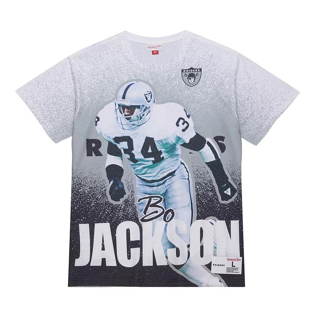 Celebrate the legacy of a Los Angeles Raiders icon with the Mitchell & Ness Bo Jackson Burst Retired Player T-Shirt. The sublimated design on the front features a dynamic image of Bo Jackson, reminding everyone of his legendary athleticism and impact on both football and baseball. Made from a soft and breathable blend of polyester and cotton, this tee keeps you comfortable whether you're reliving Bo's iconic highlights or creating your own legendary moments.Celebrate the legacy of a Los Angeles Raiders icon with the Mitchell & Ness Bo Jackson Burst Retired Player T-Shirt. The sublimated design on the front features a dynamic image of Bo Jackson, reminding everyone of his legendary athleticism and impact on both football and baseball. Made from a soft and breathable blend of polyester and cotton, this tee keeps you comfortable whether you're reliving Bo's iconic highlights or creating your own legendary moments.PRODUCT FEATURESOfficially licensedMaterial: 85% Polyester/15% CottonCrew neckImportedShort sleeveBrand: Mitchell & NessMachine wash, tumble dry lowWoven jock tag at hemSublimated design on the front with player image and team details Color: Nfl Grey. Gender: male. Age Group: adult.