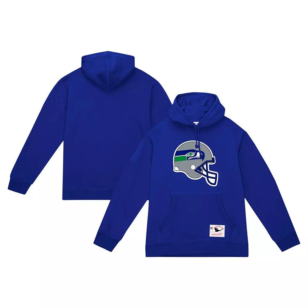 Channel vintage Seattle Seahawks style in the Mitchell & Ness Helmet Logo Vintage Pullover Hoodie. This midweight hoodie features a fleece lining, providing an extra layer of warmth and a soft feel. The screen-printed helmet with the team logo on the front adds a vintage touch, showcasing your Seahawks pride in classic style.Channel vintage Seattle Seahawks style in the Mitchell & Ness Helmet Logo Vintage Pullover Hoodie. This midweight hoodie features a fleece lining, providing an extra layer of warmth and a soft feel. The screen-printed helmet with the team logo on the front adds a vintage touch, showcasing your Seahawks pride in classic style.PRODUCT FEATURESLong sleeveWoven jock tag on pouch pocketFleece lining provides added warmth and a soft feelImportedMidweight sweatshirt suitable for moderate temperaturesMaterial: 65% Cotton/35% PolyesterScreen print helmet with team logo on frontOfficially licensedPulloverBrand: Mitchell & NessFront pouch pocket for hands-free storage and extra layer of comfortMachine wash, tumble dry lowHooded Size: XL. Gender: male. Age Group: adult.