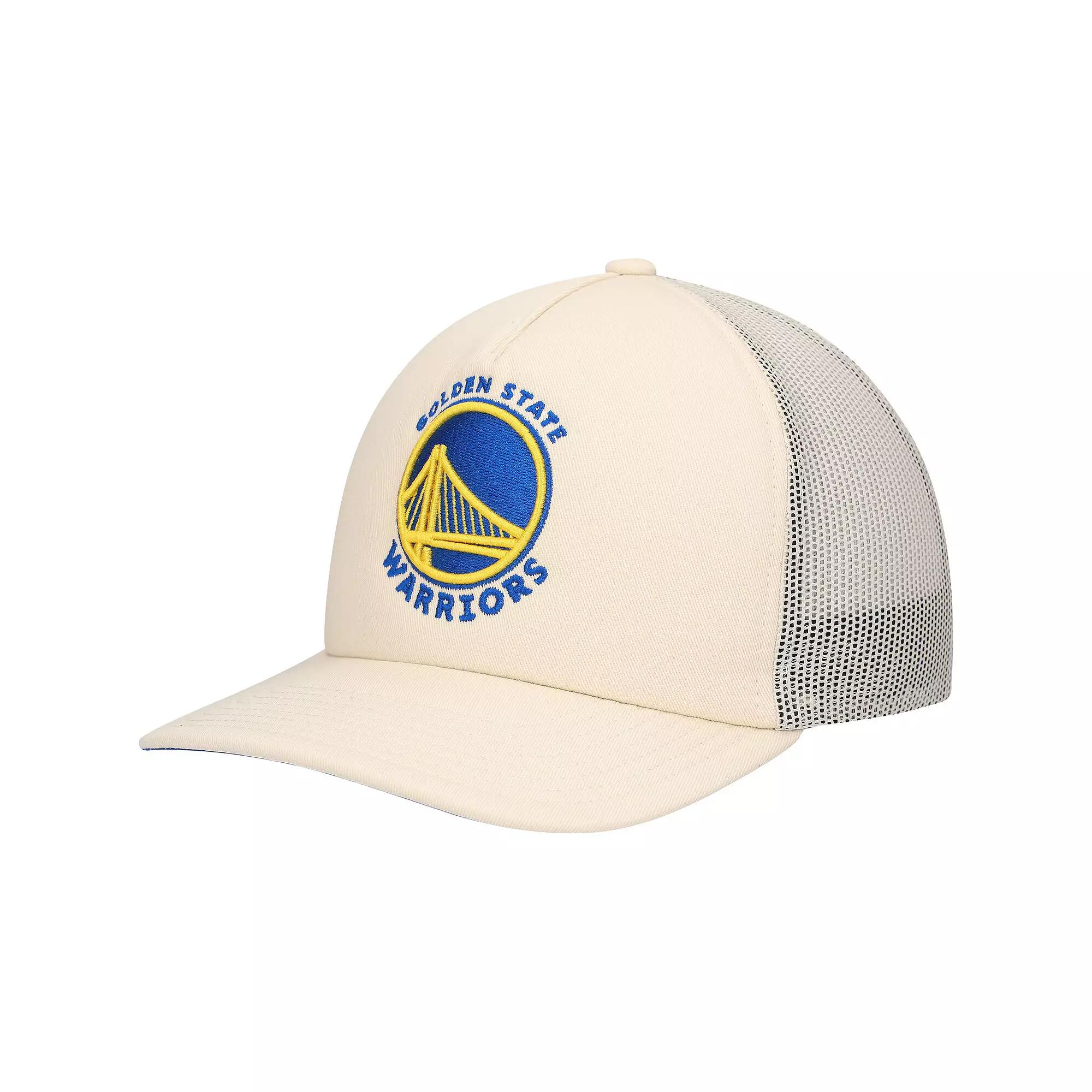Step out with a clean look up top in the form of this Golden State Warriors trucker adjustable hat from Mitchell & Ness. It features an undeniable Golden State Warriors graphic embroidered on the front panels and a neutral crown and bill that makes it easy to pair with your favorite game day tee. The mesh mid and rear panels allow you to enjoy a pleasant breeze, while the snap closure ensures your perfect fit is as easy to sink as a free throw.Step out with a clean look up top in the form of this Golden State Warriors trucker adjustable hat from Mitchell & Ness. It features an undeniable Golden State Warriors graphic embroidered on the front panels and a neutral crown and bill that makes it easy to pair with your favorite game day tee. The mesh mid and rear panels allow you to enjoy a pleasant breeze, while the snap closure ensures your perfect fit is as easy to sink as a free throw.PRODUCT FEATURESOfficially licensedMid CrownOne size fits mostContrast-color undervisorMesh mid and rear panelsEmbroidered graphics with raised detailsImportedWipe clean with a damp clothSnap ClosureCurved billStructured fitMaterial: 60% Polyester/40% CottonBrand: Mitchell & NessSolid front panel Size: One Size. Color: Beige. Gender: male. Age Group: adult.