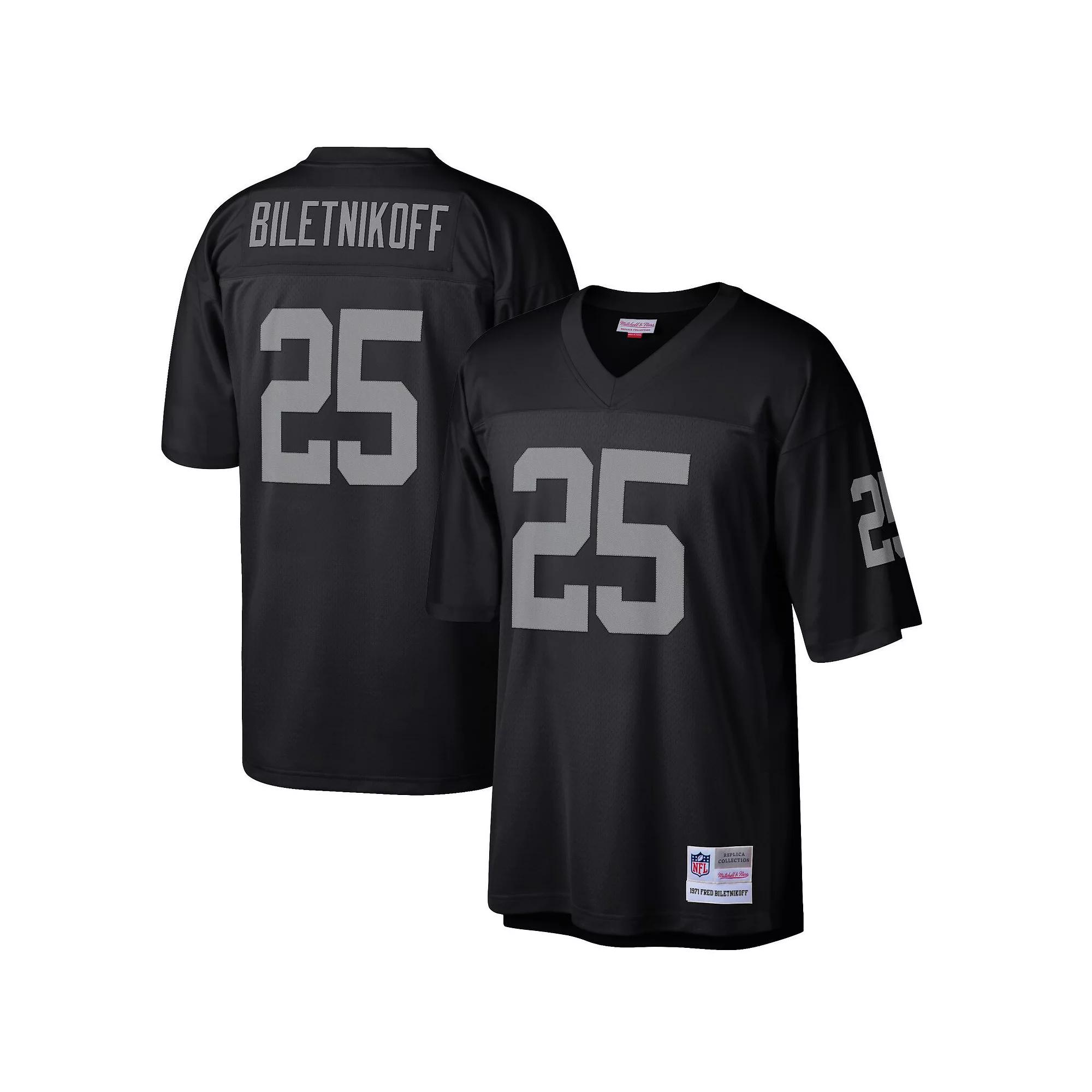 Celebrate your Fred Biletnikoff fandom with this Las Vegas Raiders retired player replica jersey from Mitchell & Ness! He might not be playing for the Las Vegas Raiders on the gridiron on Sundays anymore, but that doesnt mean hes forgotten. This jersey commemorates his legacy and features Las Vegas Raiders colors along with your favorite players name and number on the back. The man, the myth, and the legend still live on!Celebrate your Fred Biletnikoff fandom with this Las Vegas Raiders retired player replica jersey from Mitchell & Ness! He might not be playing for the Las Vegas Raiders on the gridiron on Sundays anymore, but that doesnt mean hes forgotten. This jersey commemorates his legacy and features Las Vegas Raiders colors along with your favorite players name and number on the back. The man, the myth, and the legend still live on!PRODUCT FEATURESBrand: Mitchell & NessDrop tailImportedJock tagMachine wash, dry flatMesh bodyOfficially licensedQuality embroiderySide slits at hemSizing Tip: Product runs true to size. If you are in between sizes, we recommend ordering the smaller size.Tackle twill graphics Color: Lvr Black. Gender: male. Age Group: adult.
