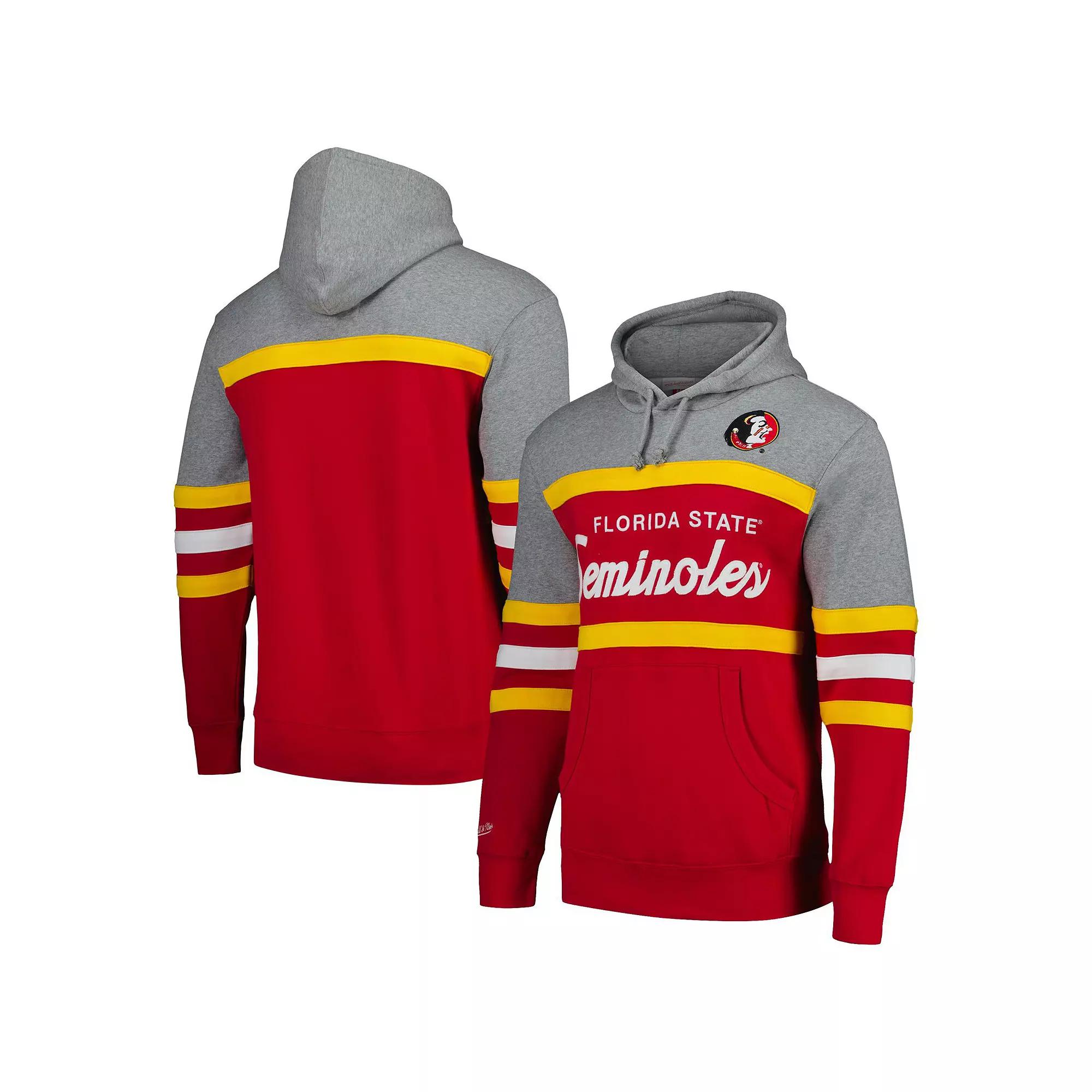 Gear up on cooler days with this Florida State Seminoles Head Coach Pullover Hoodie from Mitchell & Ness. Soft fabric and a classic design provide a comfortable fit and feel. The Florida State Seminoles details are the perfect throwback touch for this pullover.Gear up on cooler days with this Florida State Seminoles Head Coach Pullover Hoodie from Mitchell & Ness. Soft fabric and a classic design provide a comfortable fit and feel. The Florida State Seminoles details are the perfect throwback touch for this pullover.PRODUCT FEATURESMidweight hoodie suitable for moderate temperaturesOfficially licensedHoodedFleece liningFront pouch pocketPulloverLong sleeveMachine wash, tumble dry lowMaterial: 80% Cotton/20% PolyesterImportedBrand: Mitchell & NessSewn-on sleeve stripesEmbroidered fabric applique Gender: male. Age Group: adult.