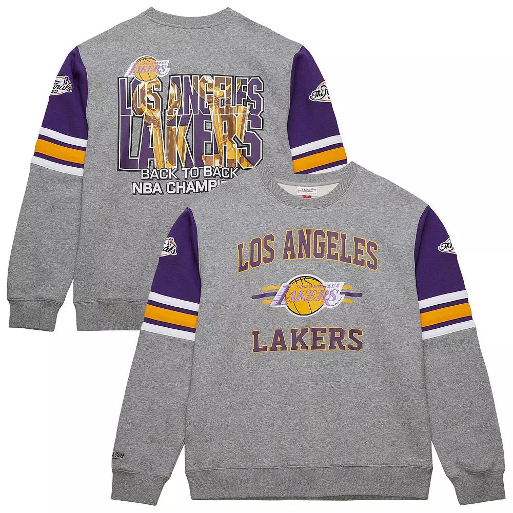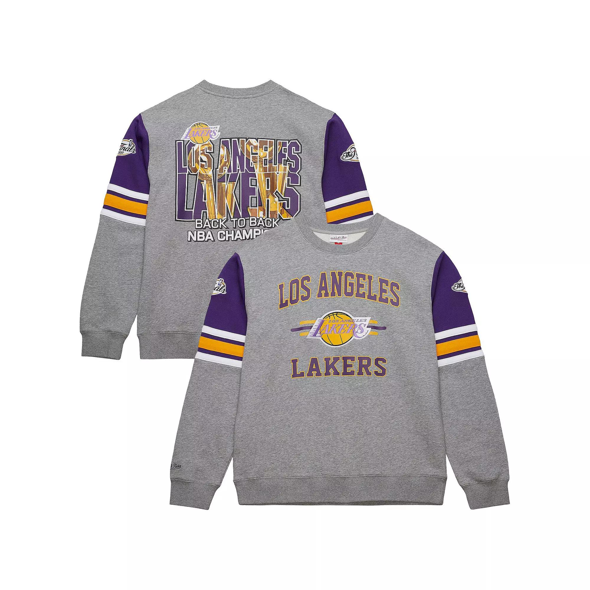 Channel the vintage vibes of the Los Angeles Lakers with this Mitchell & Ness Hardwood Classics All Over 4.0 Sweatshirt. This pullover features vintage team graphics printed on the front and back, making it a stylish tribute to your favorite team's storied history. The sewn-on stripe details and rib-knit accents on the collar, cuffs, and hem add a touch of classic athletic style.Channel the vintage vibes of the Los Angeles Lakers with this Mitchell & Ness Hardwood Classics All Over 4.0 Sweatshirt. This pullover features vintage team graphics printed on the front and back, making it a stylish tribute to your favorite team's storied history. The sewn-on stripe details and rib-knit accents on the collar, cuffs, and hem add a touch of classic athletic style.PRODUCT FEATURESSewn-on stripe detailsLong sleeveCrew neckPulloverImportedEmbroidered fabric appliqueRib-knit collar, cuffs and hemVintage team graphics printed on front and backMaterial: 80% Cotton/20% PolyesterMachine wash, tumble dry lowMidweight sweatshirt suitable for moderate temperaturesBrand: Mitchell & NessOfficially licensed Color: Grey. Gender: male. Age Group: adult.