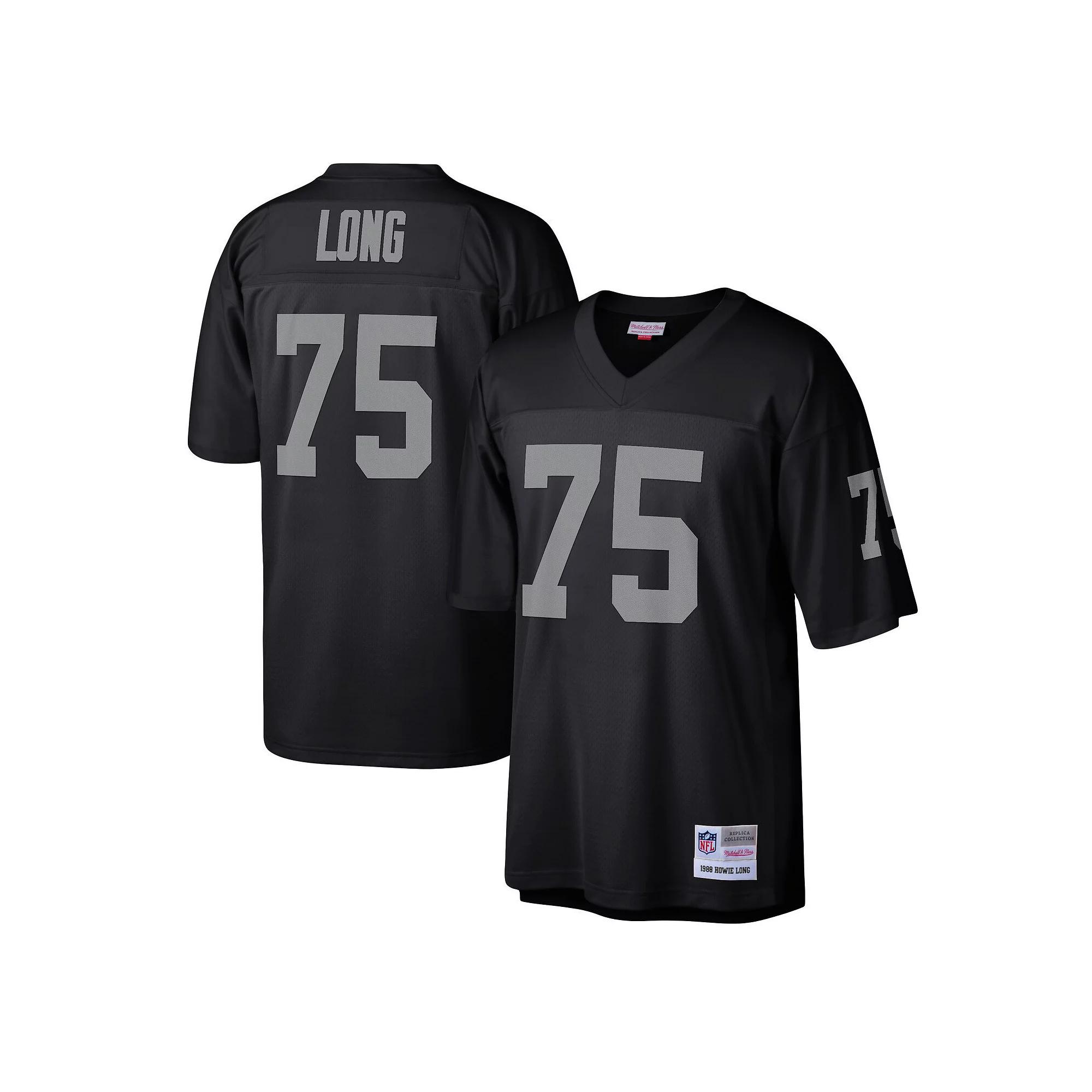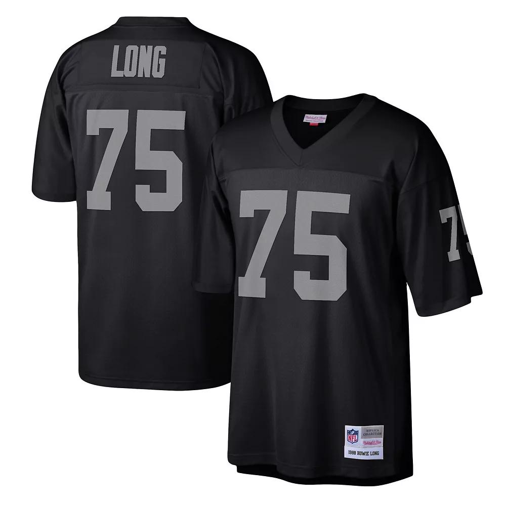 You loved watching Howie Long control the football field in his prime. Now you can show off your appreciation for his storied career with this Las Vegas Raiders Legacy Replica jersey from Mitchell & Ness. It features distinctive throwback team graphics on the chest and back, perfect for wearing at home or at the game. By wearing this jersey, youll feel like youre reliving some of your favorite players greatest plays from his glory days.You loved watching Howie Long control the football field in his prime. Now you can show off your appreciation for his storied career with this Las Vegas Raiders Legacy Replica jersey from Mitchell & Ness. It features distinctive throwback team graphics on the chest and back, perfect for wearing at home or at the game. By wearing this jersey, youll feel like youre reliving some of your favorite players greatest plays from his glory days.PRODUCT FEATURESBrand: Mitchell & NessImportedMachine wash, line dryMaterial: 100% PolyesterOfficially licensedShort sleeveSizing Tip: Product runs true to size. If you are in between sizes, we recommend ordering the smaller size.V-neck Color: Black. Gender: male. Age Group: adult.