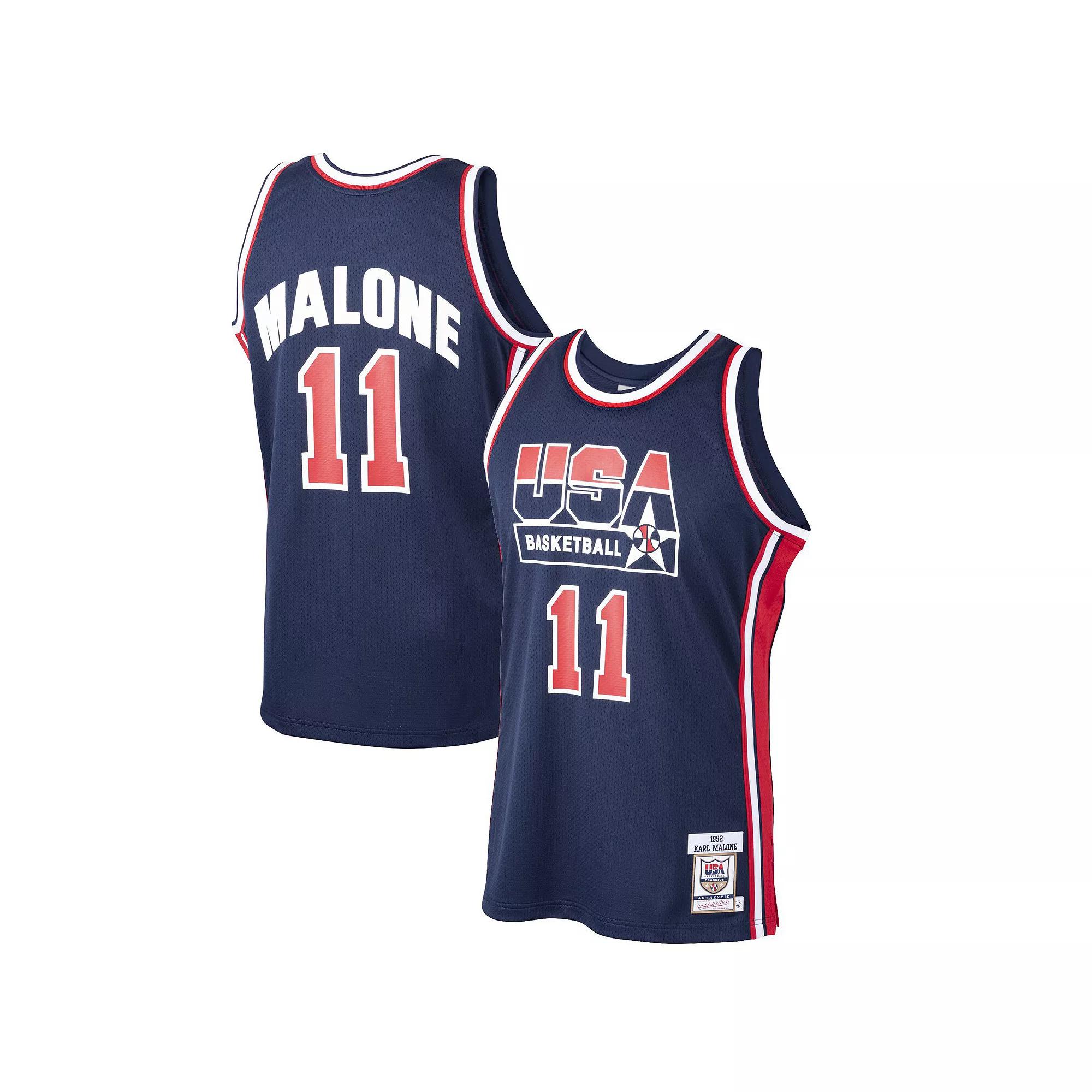 Relive the greatness of the 1992 Dream Team with this USA Basketball Karl Malone Home Authentic Jersey from Mitchell & Ness. The bold USA Basketball colors and graphics will make your team pride loud and clear. Add this sweet USA Basketball gear to your collection and you'll be the biggest fan around.Relive the greatness of the 1992 Dream Team with this USA Basketball Karl Malone Home Authentic Jersey from Mitchell & Ness. The bold USA Basketball colors and graphics will make your team pride loud and clear. Add this sweet USA Basketball gear to your collection and you'll be the biggest fan around.Brand: Mitchell & NessEmbroidered graphicsFelt graphicsHeavyweight mesh bodyImportedMachine wash, tumble dry lowMaterial: 100% PolyesterOfficially licensedRib-knit collar and arm holesSewn-on jock tagSide slits at hemSizing Tip: Product runs small. We recommend ordering one size larger than you normally wear.Tackle twill numbers & lettering Color: Navy. Gender: male. Age Group: adult.