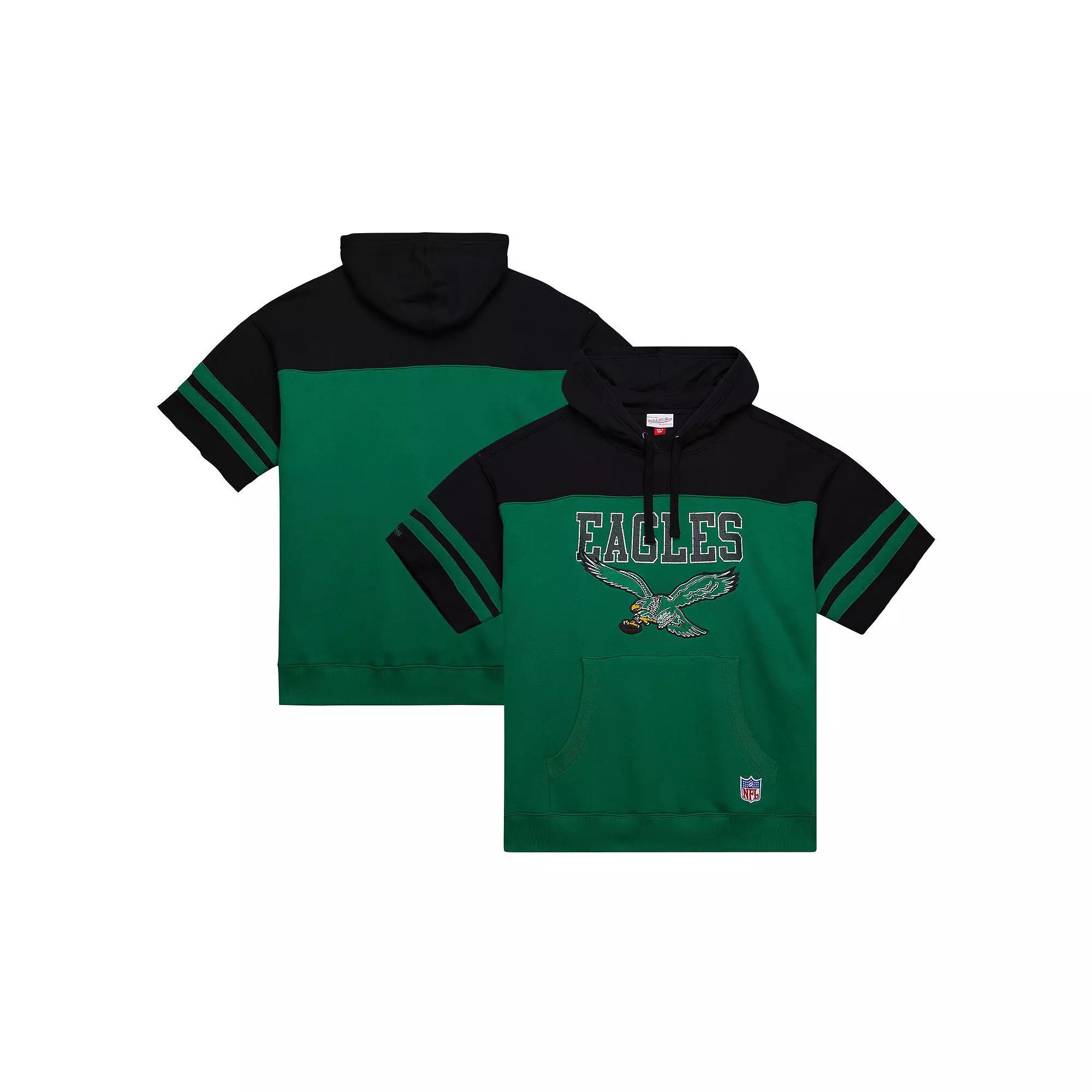 Channel vintage Philadelphia Eagles style with this Mitchell & Ness Off Field Vintage Logo Short Sleeve Pullover Hoodie. Sewn-in contrast-color sleeve stripes add a touch of classic style, while the front pouch pocket provides convenient storage for your essentials. This hoodie is a must-have for any Eagles fan looking to rep their team with some vintage flair.Channel vintage Philadelphia Eagles style with this Mitchell & Ness Off Field Vintage Logo Short Sleeve Pullover Hoodie. Sewn-in contrast-color sleeve stripes add a touch of classic style, while the front pouch pocket provides convenient storage for your essentials. This hoodie is a must-have for any Eagles fan looking to rep their team with some vintage flair.PRODUCT FEATURESOfficially licensedScreen print graphicsHoodedImportedMidweight hoodie suitable for moderate temperaturesPulloverFront pouch pocketTeam wordmark with distressed details for a vintage lookBrand: Mitchell & NessSewn-in contrast-color sleeve stripesShort sleeveEmbroidered team logo on front chestMaterial: 80% Cotton/20% Polyester Size: 4XL. Color: Green. Gender: male. Age Group: adult.