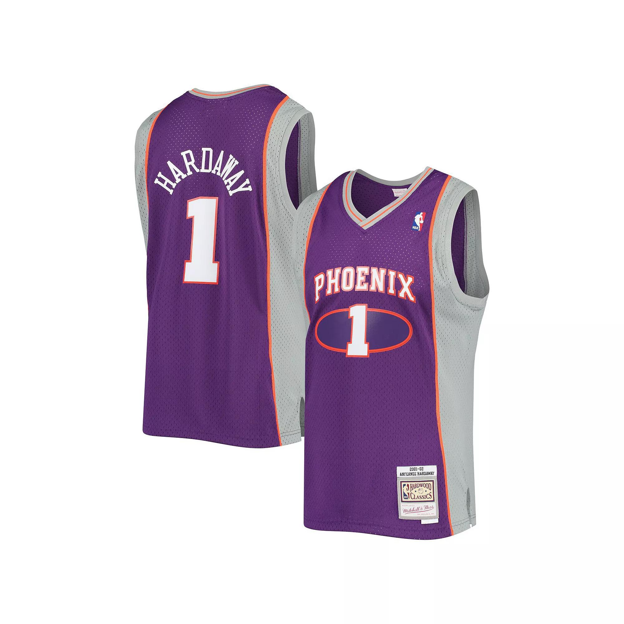 Get a throwback tip-off-ready look with this Penny Hardaway Phoenix Suns Authentic Hardwood Classics Swingman jersey. This official jersey from Mitchell & Ness features classic trims and Phoenix Suns graphics along with the player name and number, so casual and die-hard basketball fans will know who you love and what era you came up in. Before you head to the next game, put on this incredible jersey and showcase your respect for one of the best to ever hit the court for the Phoenix Suns.Get a throwback tip-off-ready look with this Penny Hardaway Phoenix Suns Authentic Hardwood Classics Swingman jersey. This official jersey from Mitchell & Ness features classic trims and Phoenix Suns graphics along with the player name and number, so casual and die-hard basketball fans will know who you love and what era you came up in. Before you head to the next game, put on this incredible jersey and showcase your respect for one of the best to ever hit the court for the Phoenix Suns.PRODUCT FEATURESOfficially licensedBrand: Mitchell & NessMachine wash, line dryRib-knit collar and arm openingsMesh fabricTackle twill graphicsMaterial: 100% PolyesterImportedV-neckWoven jock tag at hemSleevelessSide splits at hemSublimated graphics Size: XL. Color: Purple. Gender: male. Age Group: adult.