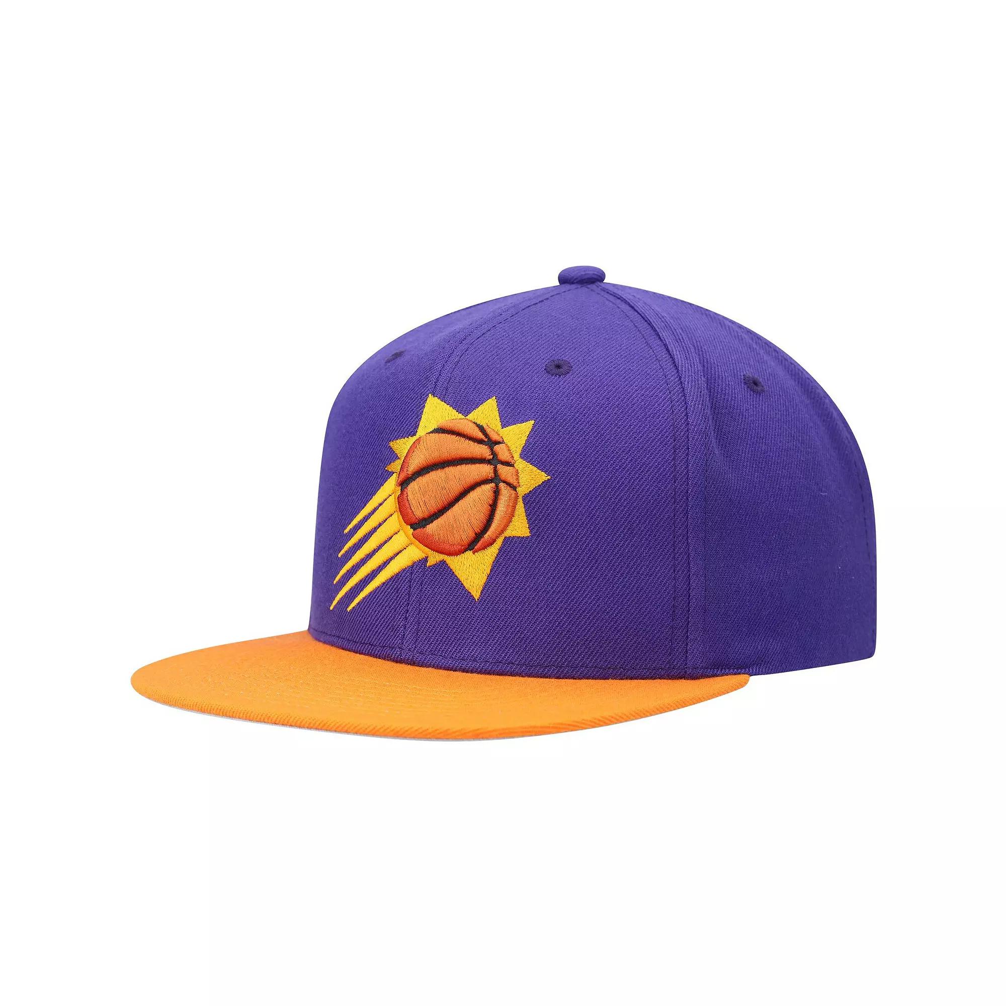 Stay shaded in Phoenix Suns style with this Two-Tone 2.0 hat. This Mitchell & Ness cap features embroidered graphics and a contrast-color undervisor for an added dash of style. The two-tone design and snapback closure make this Phoenix Suns hat perfect for topping off any look.Stay shaded in Phoenix Suns style with this Two-Tone 2.0 hat. This Mitchell & Ness cap features embroidered graphics and a contrast-color undervisor for an added dash of style. The two-tone design and snapback closure make this Phoenix Suns hat perfect for topping off any look.PRODUCT FEATURESBrand: Mitchell & NessContrast-color undervisorDry clean onlyEmbroidered graphics with raised embroideryFlat billHigh CrownImportedMaterial: 85% Acrylic/15% WoolOfficially licensedOne size fits mostSix panels with eyeletsSnapbackStructured fit Size: One Size. Color: Purple. Gender: male. Age Group: adult.