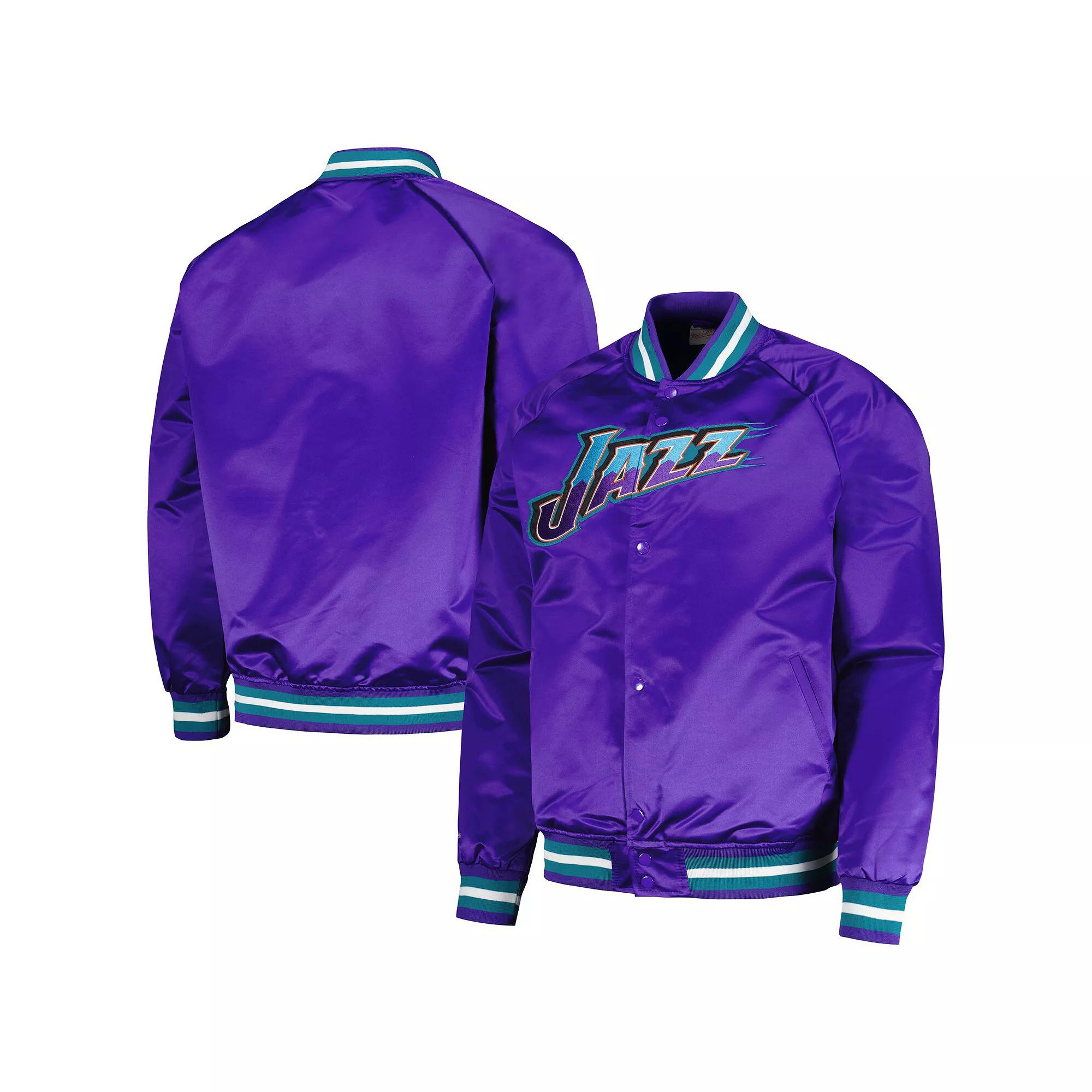 Men's Mitchell & Ness Purple Utah Jazz Hardwood Classics Throwback Wordmark Raglan Full-Snap Jacket,  Product Image