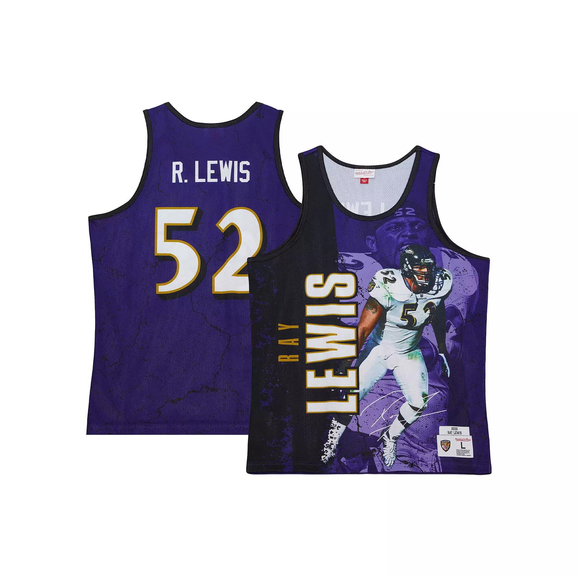 Finish any Baltimore Ravens look off perfectly with this Ray Lewis Name and Number Burst tank top from Mitchell & Ness. It features bold player graphics over breathable mesh fabric for a striking look. This muscle tank is perfect for stepping out in undeniable throwback Baltimore Ravens style.Finish any Baltimore Ravens look off perfectly with this Ray Lewis Name and Number Burst tank top from Mitchell & Ness. It features bold player graphics over breathable mesh fabric for a striking look. This muscle tank is perfect for stepping out in undeniable throwback Baltimore Ravens style.PRODUCT FEATURESMachine wash, tumble dry lowOfficially licensedImportedSewn-on jock tagSublimated graphicsSleevelessMaterial: 100% PolyesterMesh fabricBrand: Mitchell & Ness Color: Purple. Gender: male. Age Group: adult.