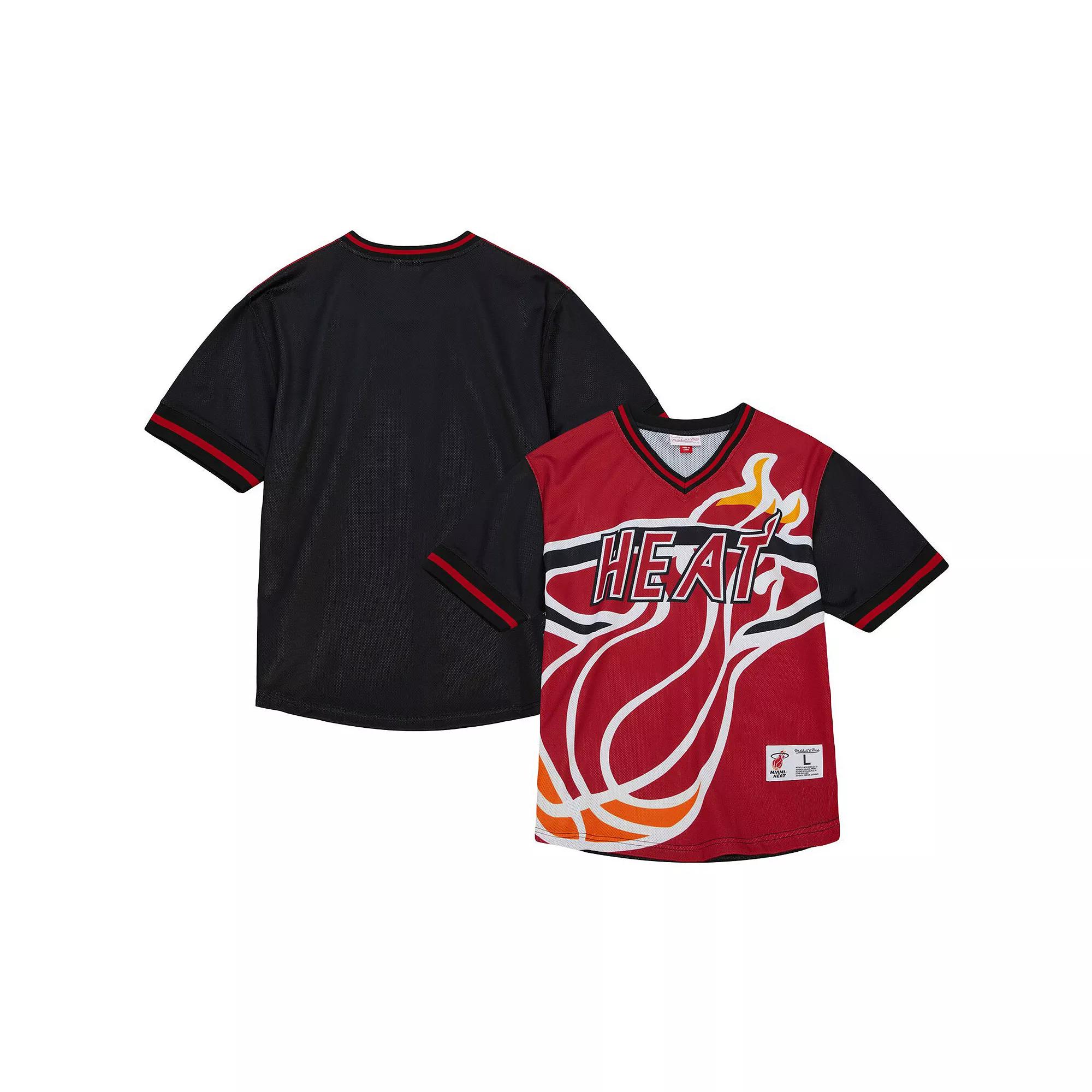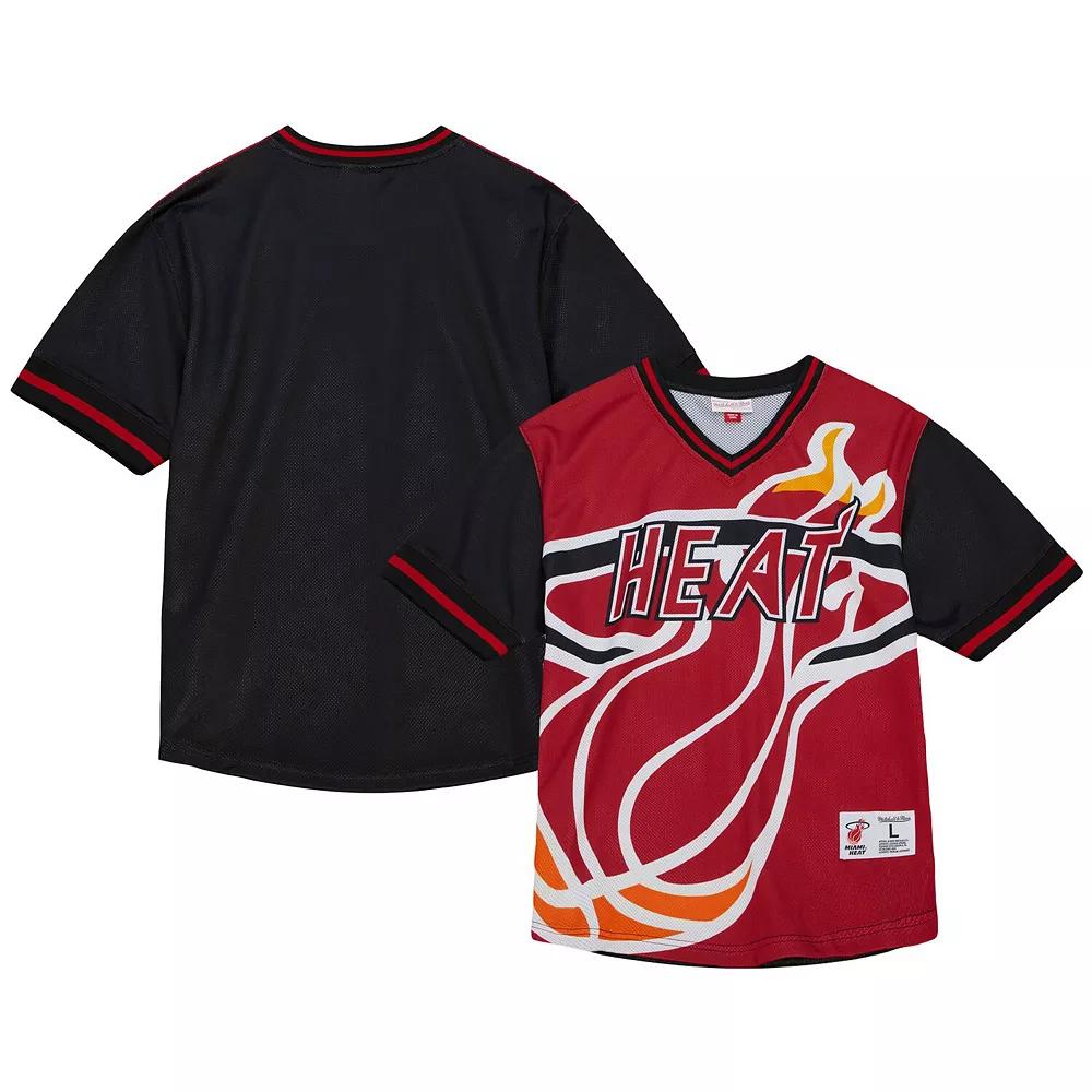Put all eyes on your dedication to the Miami Heat by wearing this Jumbotron 3.0 V-neck T-shirt from Mitchell & Ness. It features oversized Miami Heat graphics on breathable mesh fabric. The rounded hem provides a more comfortable and relaxed fit.Put all eyes on your dedication to the Miami Heat by wearing this Jumbotron 3.0 V-neck T-shirt from Mitchell & Ness. It features oversized Miami Heat graphics on breathable mesh fabric. The rounded hem provides a more comfortable and relaxed fit.PRODUCT FEATURESImportedOfficially licensedMachine wash, line dryBrand: Mitchell & NessMesh fabricRounded hemWoven jock tag at bottom hemSublimated graphicsMaterial: 100% PolyesterShort sleeveV-neck Color: Red. Gender: male. Age Group: adult.