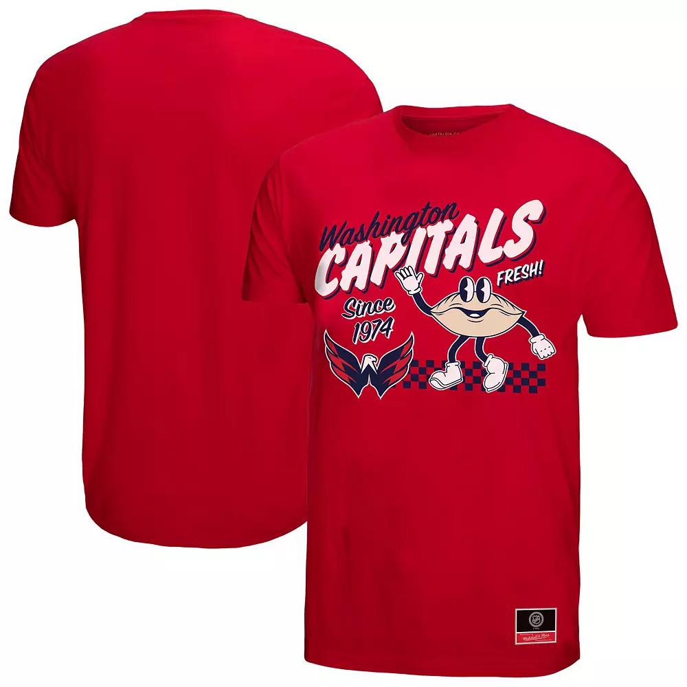Give the next Washington Capitals game day some extra bite when you sport this Local Food T-shirt from Mitchell & Ness. It features a bold design printed across the front that playfully highlights iconic cuisine from your favorite NHL teams location. This tee is finished with a classic crew neck cut and crafted from soft cotton fabric for premium comfort when cheering on the Washington Capitals.Give the next Washington Capitals game day some extra bite when you sport this Local Food T-shirt from Mitchell & Ness. It features a bold design printed across the front that playfully highlights iconic cuisine from your favorite NHL teams location. This tee is finished with a classic crew neck cut and crafted from soft cotton fabric for premium comfort when cheering on the Washington Capitals.PRODUCT FEATURESScreen print graphicsImportedBrand: Mitchell & NessMaterial: 100% CottonOfficially licensedShort sleeveCrew neckMachine wash, tumble dry lowDigitally printed graphics Color: Red. Gender: male. Age Group: adult.