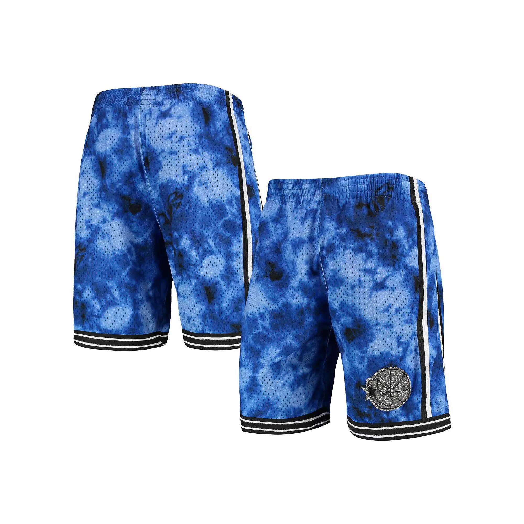 Throw it back to the 1995 Golden State Warriors with these Mitchell & Ness Hardwood Classics Galaxy Swingman shorts. It features a unique sublimated tie-dye pattern to go along with sewn-on stripes for a bold look. Plus, the elastic waistband ensures a personalized fit so you can comfortably show off the embroidered Golden State Warriors logo.Throw it back to the 1995 Golden State Warriors with these Mitchell & Ness Hardwood Classics Galaxy Swingman shorts. It features a unique sublimated tie-dye pattern to go along with sewn-on stripes for a bold look. Plus, the elastic waistband ensures a personalized fit so you can comfortably show off the embroidered Golden State Warriors logo.Brand: Mitchell & NessImportedOfficially licensedSublimated tie-dye pattern may varyMachine wash, line dryInseam on size M measures approx. 8Sewn-on stripesElastic waistband with drawstringMaterial: 100% PolyesterMesh fabricTwo side slip pocketsEmbroidered fabric applique Color: Blue. Gender: male. Age Group: adult. Material: COTTON.