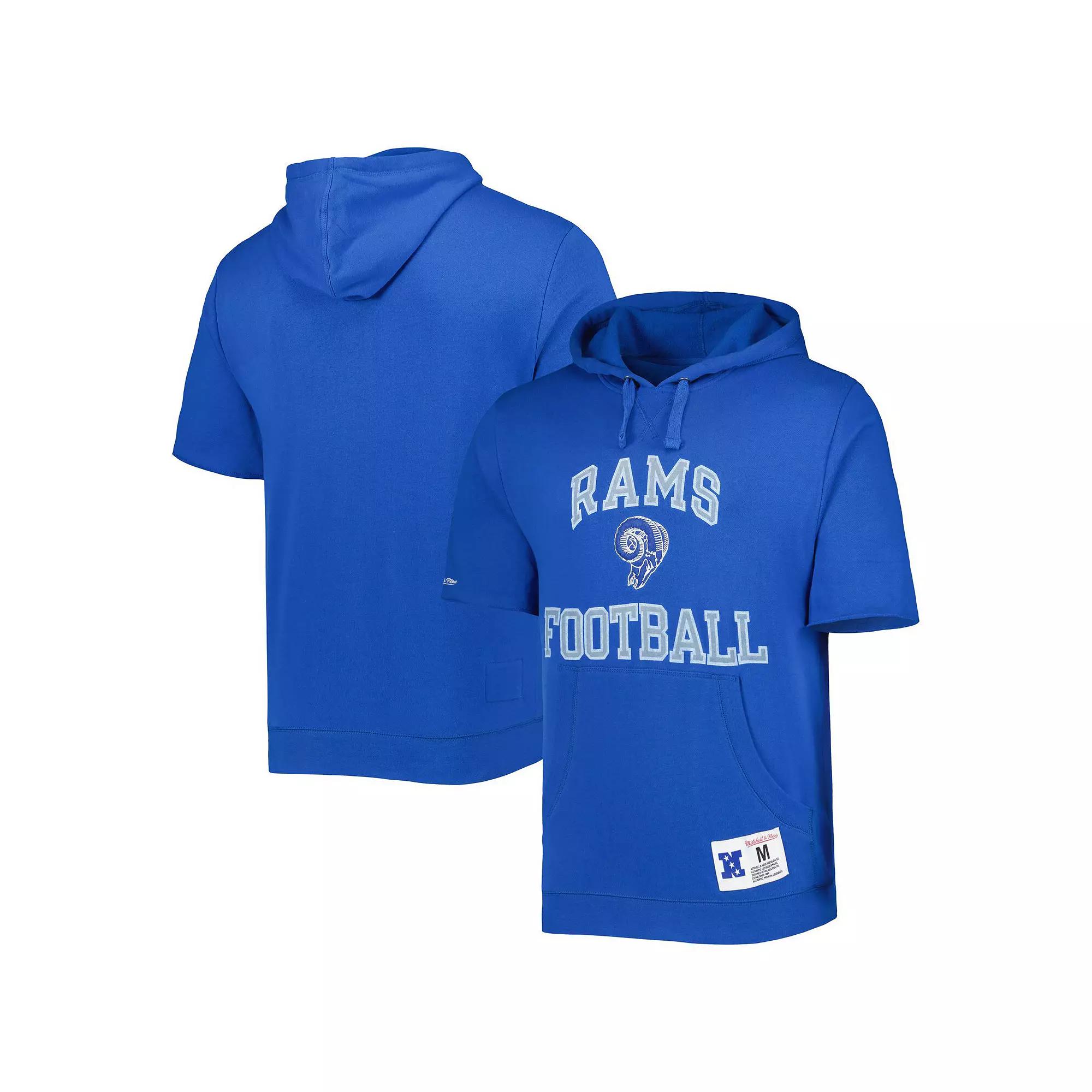 Layer up with a bold display of your Los Angeles Rams fandom by adding this Mitchell & Ness short sleeve hoodie to your gear collection. Its washed fabric offers a distressed, worn-in look that accentuates the Los Angeles Rams graphics, making your appreciation for your favorites unmistakable. The hoodies midweight design, fleece lining and short sleeves also give you the perfect combination of coverage and comfort.Layer up with a bold display of your Los Angeles Rams fandom by adding this Mitchell & Ness short sleeve hoodie to your gear collection. Its washed fabric offers a distressed, worn-in look that accentuates the Los Angeles Rams graphics, making your appreciation for your favorites unmistakable. The hoodies midweight design, fleece lining and short sleeves also give you the perfect combination of coverage and comfort.Machine wash, tumble dry lowWashed fabricShort sleeveMidweight hoodie suitable for moderate temperaturesFront pouch pocketImportedFleece liningPulloverHoodedOfficially licensedEmbroidered graphicsScreen print wordmarkRaw edge sleeve hemMaterial: 80% Cotton/20% PolyesterBrand: Mitchell & NessPulloverHood with drawstring Color: LAR BLUE. Gender: male. Age Group: adult.