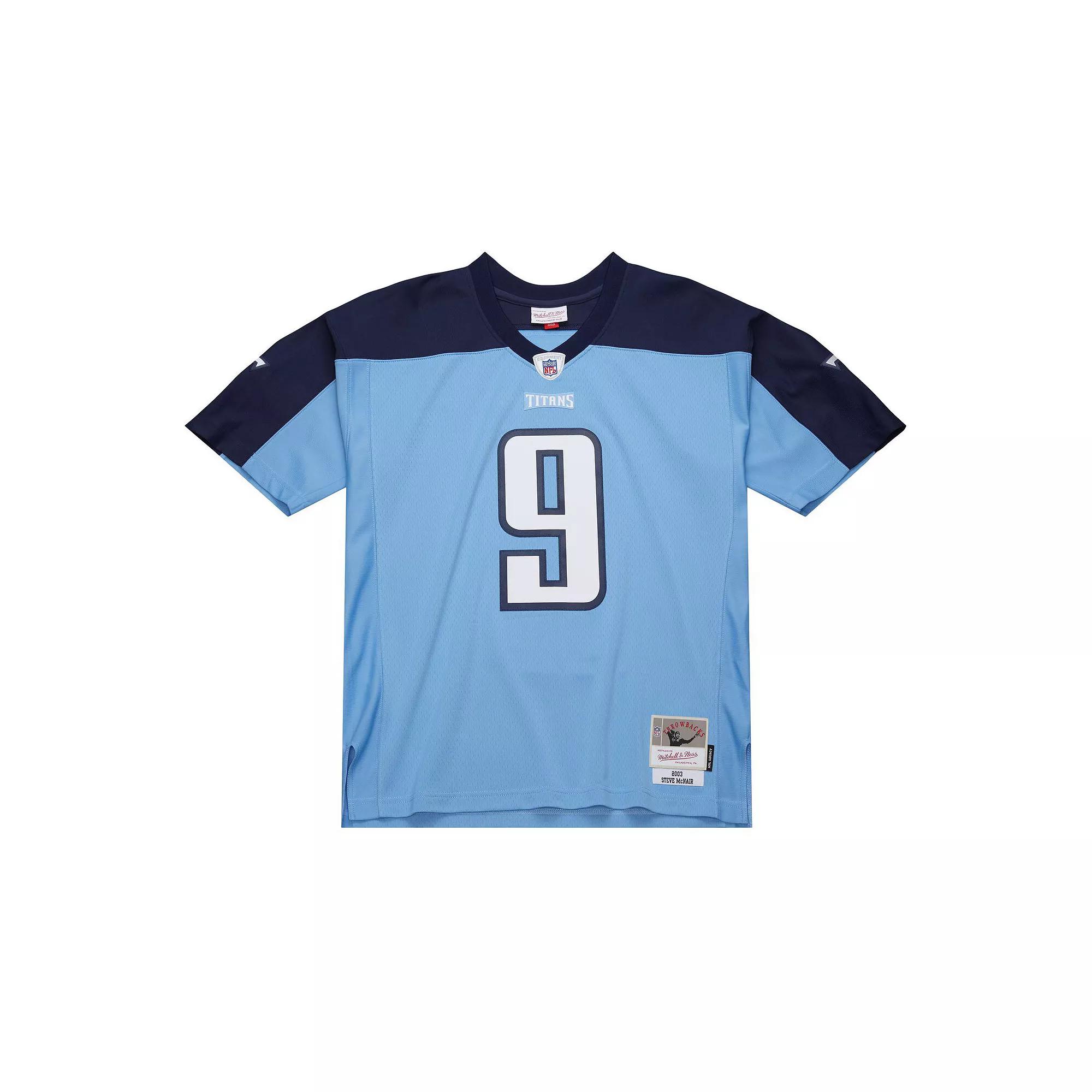 Celebrate a Tennessee Titans legend with this Steve McNair 2003 Legacy Replica Jersey. Its crafted from breathable mesh fabric, ensuring you stay cool and comfortable whether youre at the game or watching from home. The embroidered twill graphics add an authentic touch, showcasing your Tennessee Titans pride with vibrant, lasting detail.Celebrate a Tennessee Titans legend with this Steve McNair 2003 Legacy Replica Jersey. Its crafted from breathable mesh fabric, ensuring you stay cool and comfortable whether youre at the game or watching from home. The embroidered twill graphics add an authentic touch, showcasing your Tennessee Titans pride with vibrant, lasting detail.PRODUCT FEATURESOfficially licensedLegacySide splits at waist hemShort sleevesMachine wash, line dryImportedEmbroidered twill graphicsMesh fabricBrand: Mitchell & NessMaterial: 100% PolyesterV-neckWoven tags at bottom hem Color: Light. Gender: male. Age Group: adult. Material: COTTON.