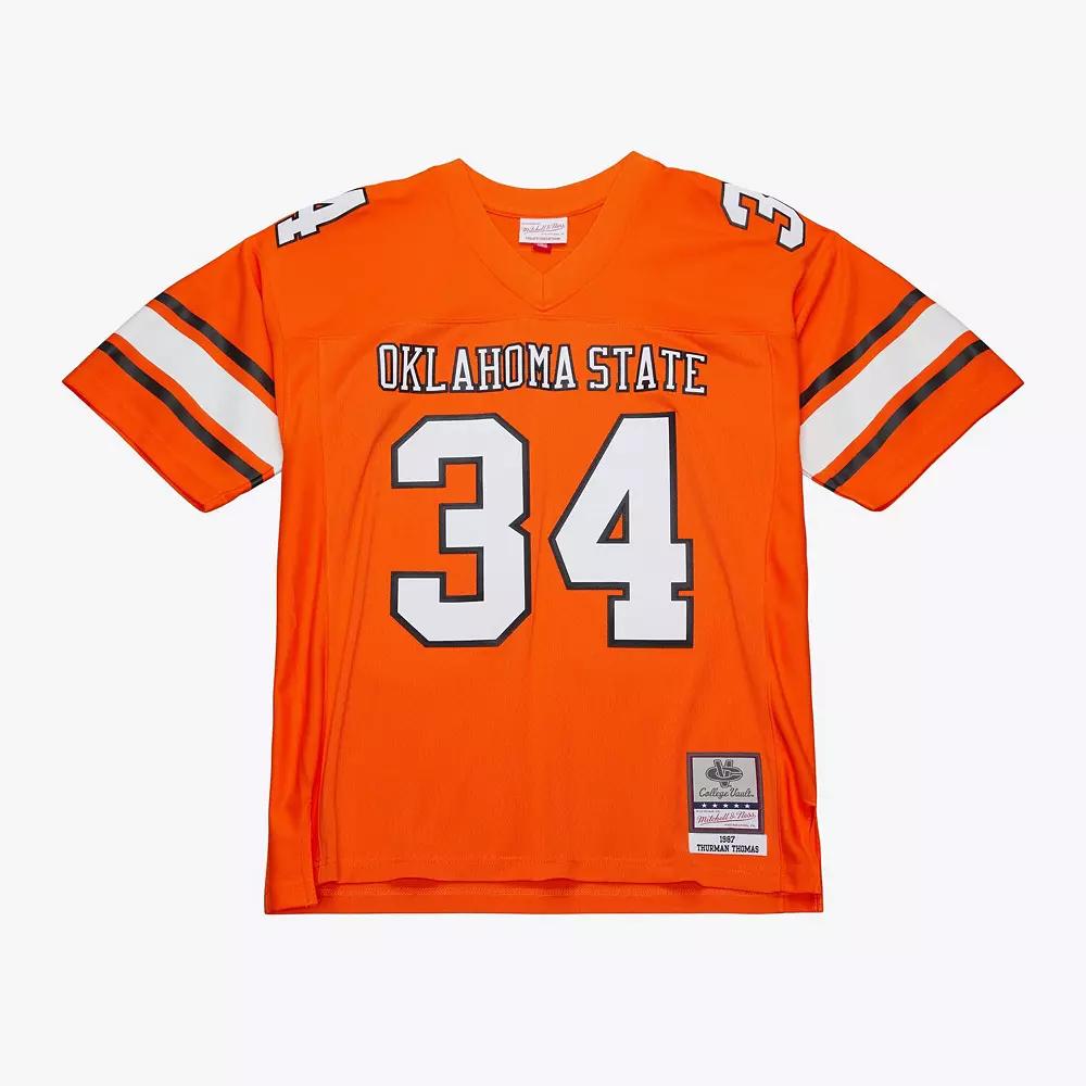 Represent one of your all-time favorite Oklahoma State Cowboys players with this Thurman Thomas 1987 Replica Jersey. Its fabric ensures breathability and comfortability. The throwback details are inspired by what the Oklahoma State Cowboys wore in days gone by. Every stitch on this jersey is tailored to exact team specifications delivering outstanding quality and a premium feel.Represent one of your all-time favorite Oklahoma State Cowboys players with this Thurman Thomas 1987 Replica Jersey. Its fabric ensures breathability and comfortability. The throwback details are inspired by what the Oklahoma State Cowboys wore in days gone by. Every stitch on this jersey is tailored to exact team specifications delivering outstanding quality and a premium feel.PRODUCT FEATURESSide splits at waist hemScreen print graphicsV-neckMesh fabricEmbroidered twill graphicsWoven tags at bottom hemOfficially licensedReplicaImportedBrand: Mitchell & NessFabric applique sewn onShort sleevesMaterial: 100% Polyester Size: XL. Color: Orange. Gender: male. Age Group: adult.