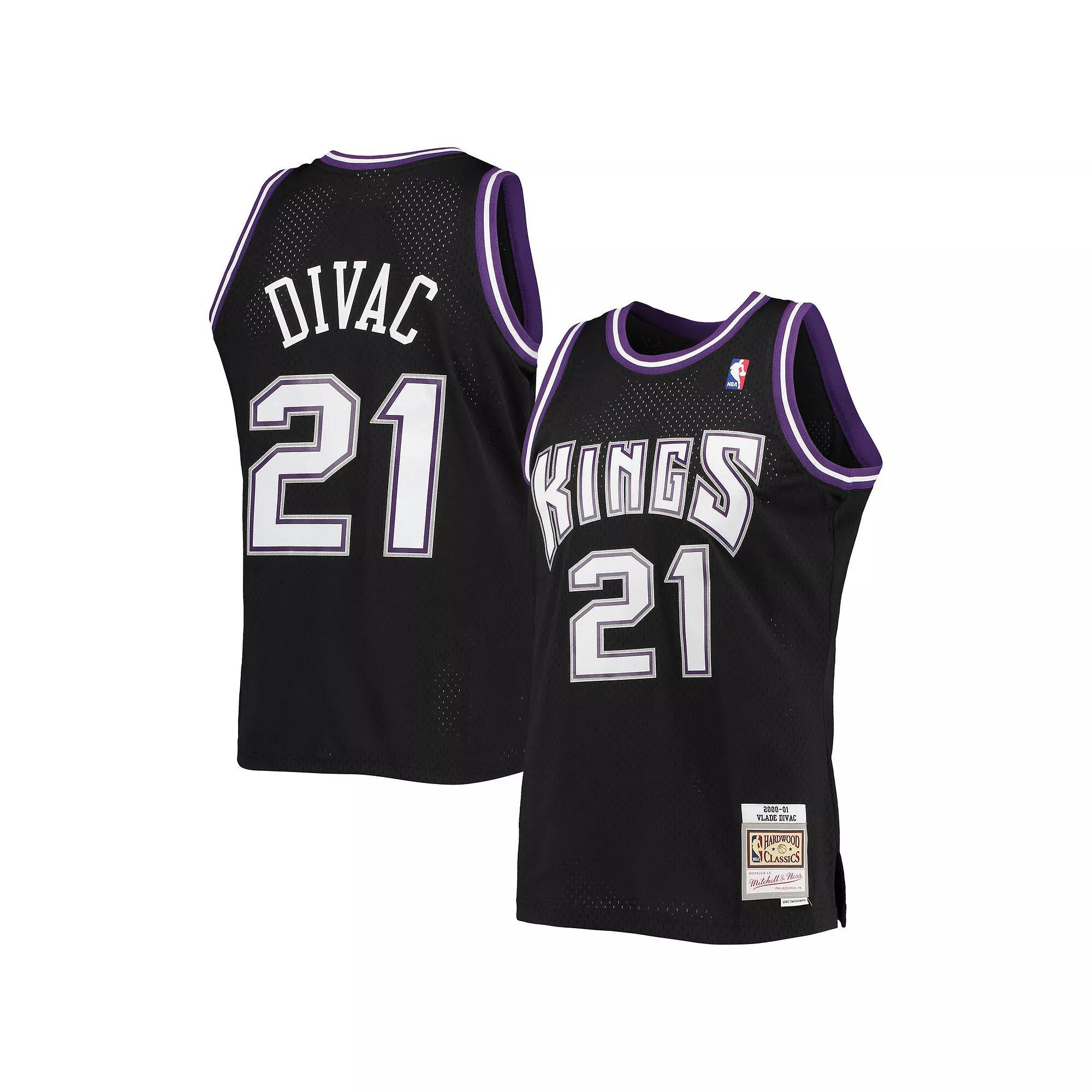 Bring home the look of a key player in Sacramento Kings history with this Vlade Divac Hardwood Classics Swingman jersey. Crafted for excellence by Mitchell & Ness, this jersey features a retro design with distinct player and team graphics. Made with lightweight mesh fabric, this piece will help you relive your favorite player's greatest moments.Bring home the look of a key player in Sacramento Kings history with this Vlade Divac Hardwood Classics Swingman jersey. Crafted for excellence by Mitchell & Ness, this jersey features a retro design with distinct player and team graphics. Made with lightweight mesh fabric, this piece will help you relive your favorite player's greatest moments.Machine wash, line drySide splits at waist hemBrand: Mitchell & NessImportedOfficially licensedHeat-sealed NBA LogomanMaterial: 100% PolyesterWoven jock tagCrew neckHeat-sealed tackle twill appliqueSleevelessMesh fabric Color: Black. Gender: male. Age Group: adult.