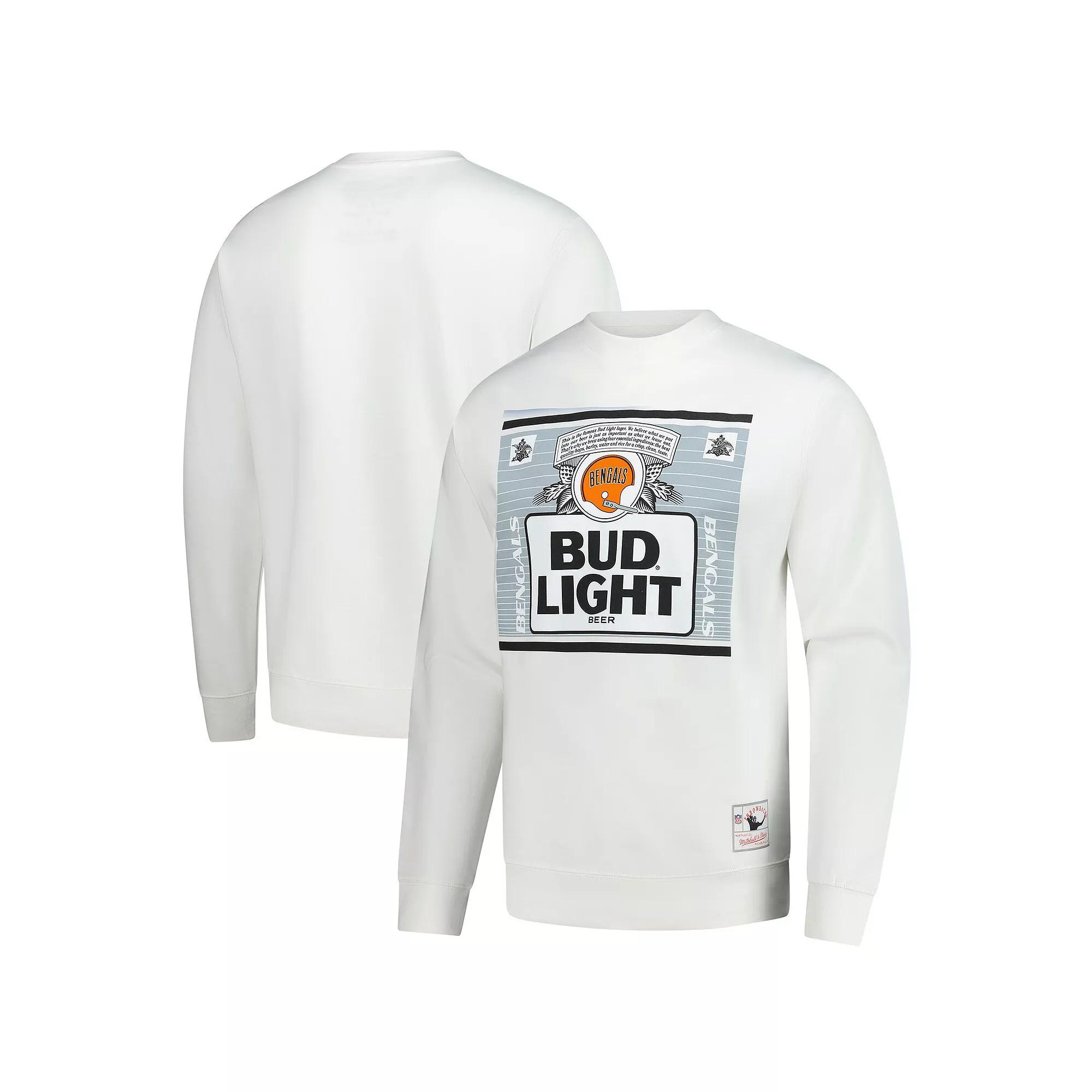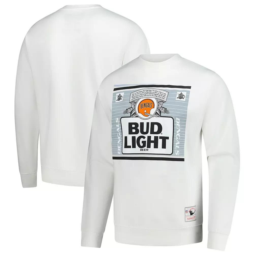 Embrace classic Cincinnati Bengals style with Mitchell & Ness The Crest Pullover Sweatshirt from the NFL x Bud Light collaboration. The fleece lining provides added warmth, making it perfect for those chilly game days or kicking it back with a cold one at home. With a screen-printed graphic on the front, this sweatshirt proudly showcases your favorite drink and Cincinnati Bengals pride.Embrace classic Cincinnati Bengals style with Mitchell & Ness The Crest Pullover Sweatshirt from the NFL x Bud Light collaboration. The fleece lining provides added warmth, making it perfect for those chilly game days or kicking it back with a cold one at home. With a screen-printed graphic on the front, this sweatshirt proudly showcases your favorite drink and Cincinnati Bengals pride.PRODUCT FEATURESImportedPulloverOfficially licensedMidweight sweatshirt suitable for moderate temperaturesCrew neckMaterial: 80% Cotton/20% PolyesterTrue to sizeFleece lining provides added warmth and a soft feelScreen print graphicsBrand: Mitchell & NessRibbed cuffs and bottom hemMachine wash, tumble dry lowLong sleeve Size: 2XL. Color: White. Gender: male. Age Group: adult.