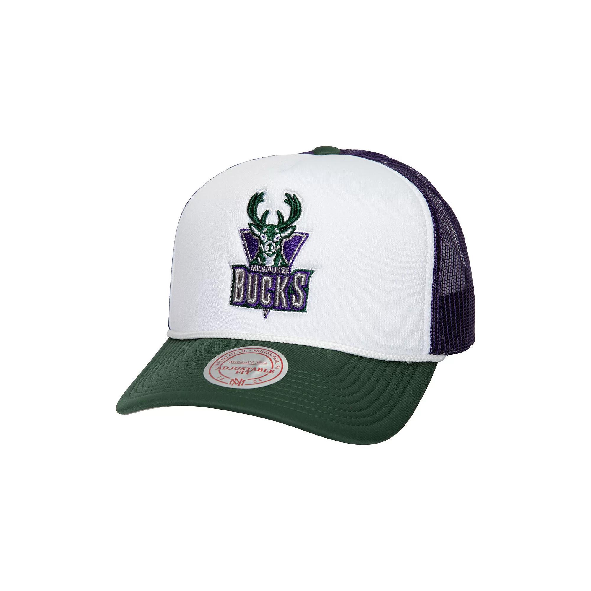 Pump up your collection of Milwaukee Bucks headwear with this Hardwood Classics Blocker Foam Front Trucker Snapback Hat from Mitchell & Ness. It features vintage team graphics to showcase your timeless devotion to your favorite squad. An adjustable closure lets you easily customize the fit for comfort.Pump up your collection of Milwaukee Bucks headwear with this Hardwood Classics Blocker Foam Front Trucker Snapback Hat from Mitchell & Ness. It features vintage team graphics to showcase your timeless devotion to your favorite squad. An adjustable closure lets you easily customize the fit for comfort.PRODUCT FEATURESOfficially licensedMid CrownCurved billStructured fitSnap ClosureWipe clean with a damp clothBrand: Mitchell & NessMaterial: 100% PolyesterContrast-color undervisorImportedEmbroidered graphicsOne size fits mostSolid front panel with four mesh mid and rear panels Size: One Size. Color: White. Gender: male. Age Group: adult.