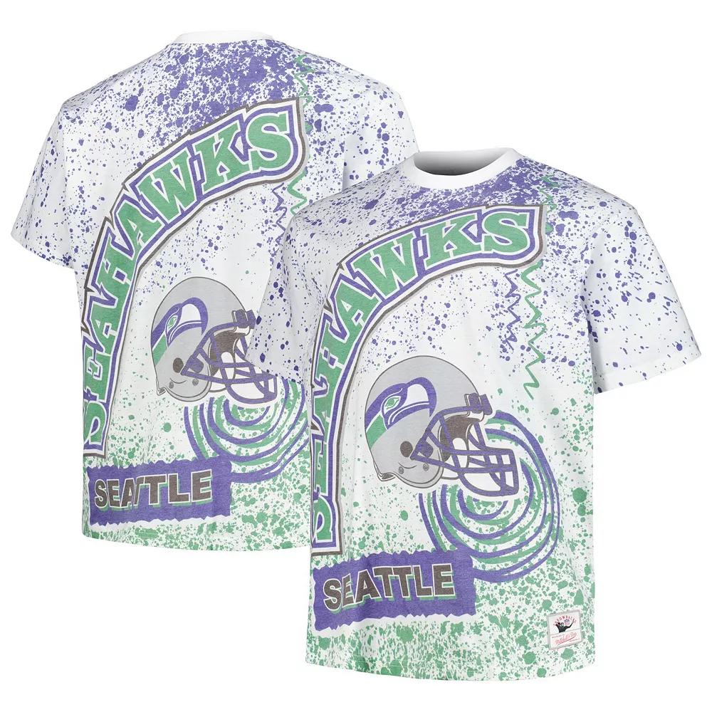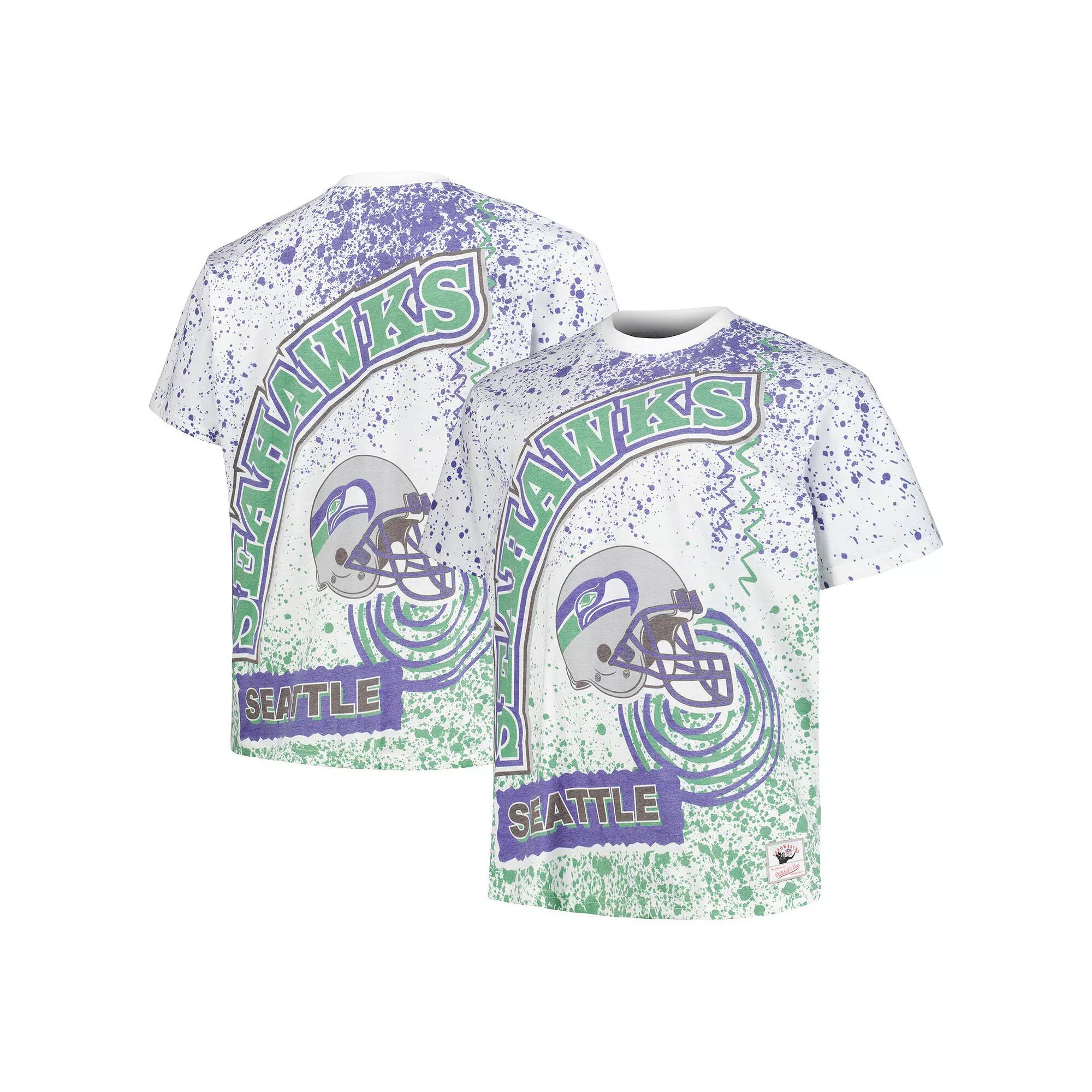 Men's Mitchell & Ness White Seattle Seahawks Big & Tall Allover Print T-Shirt, Size: 5XB