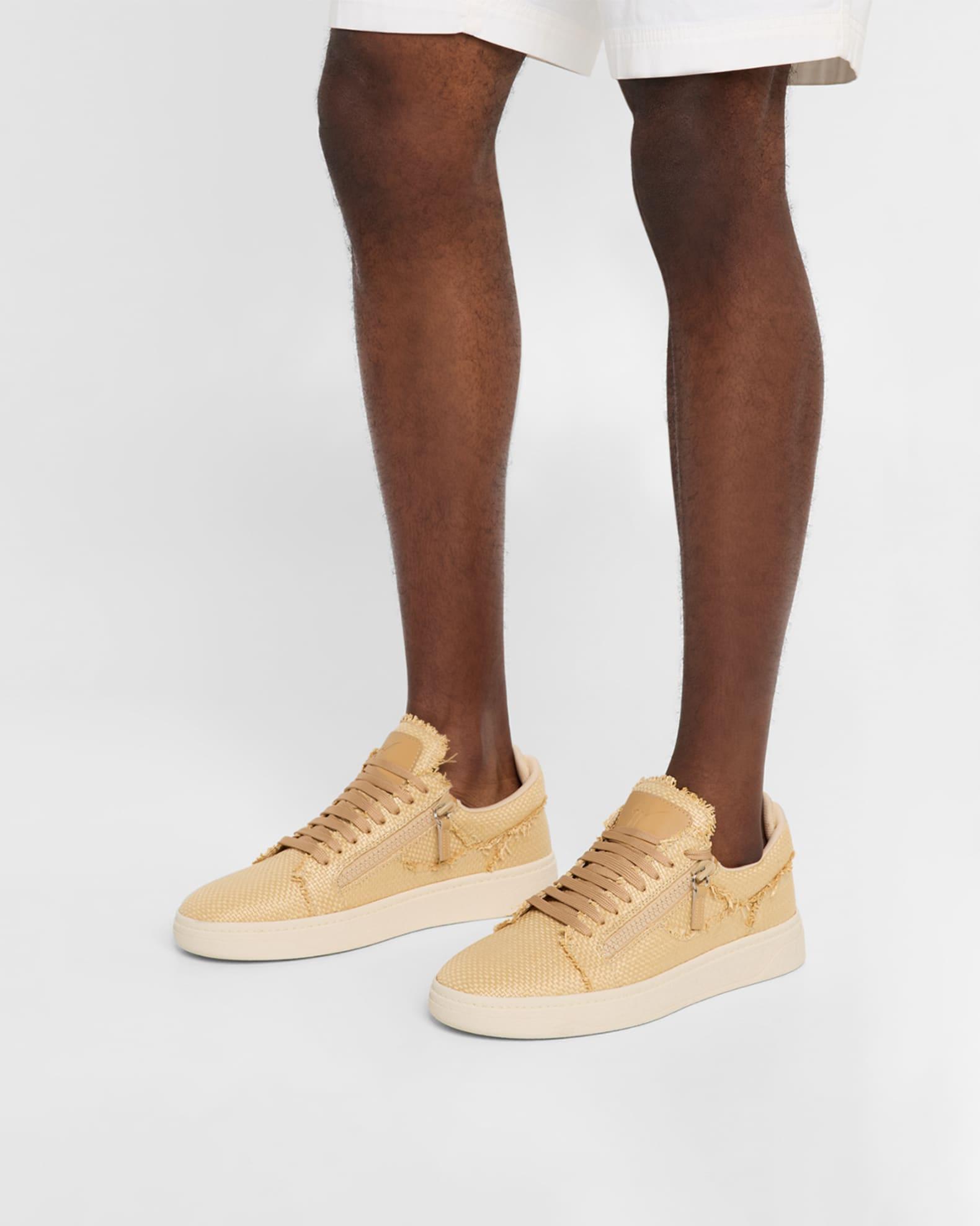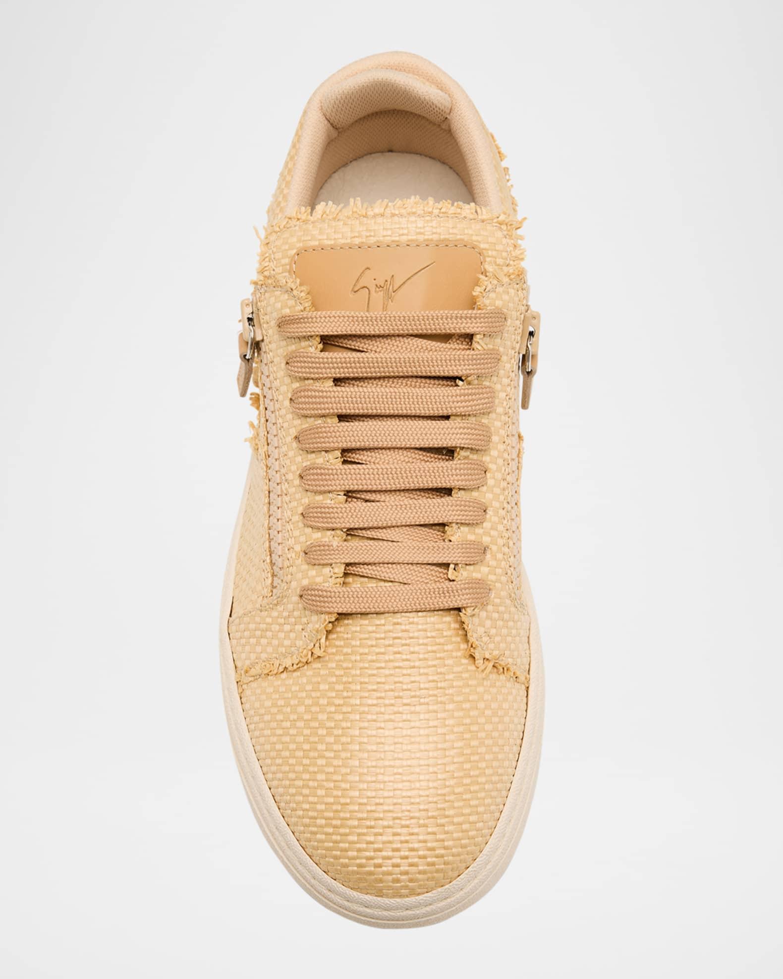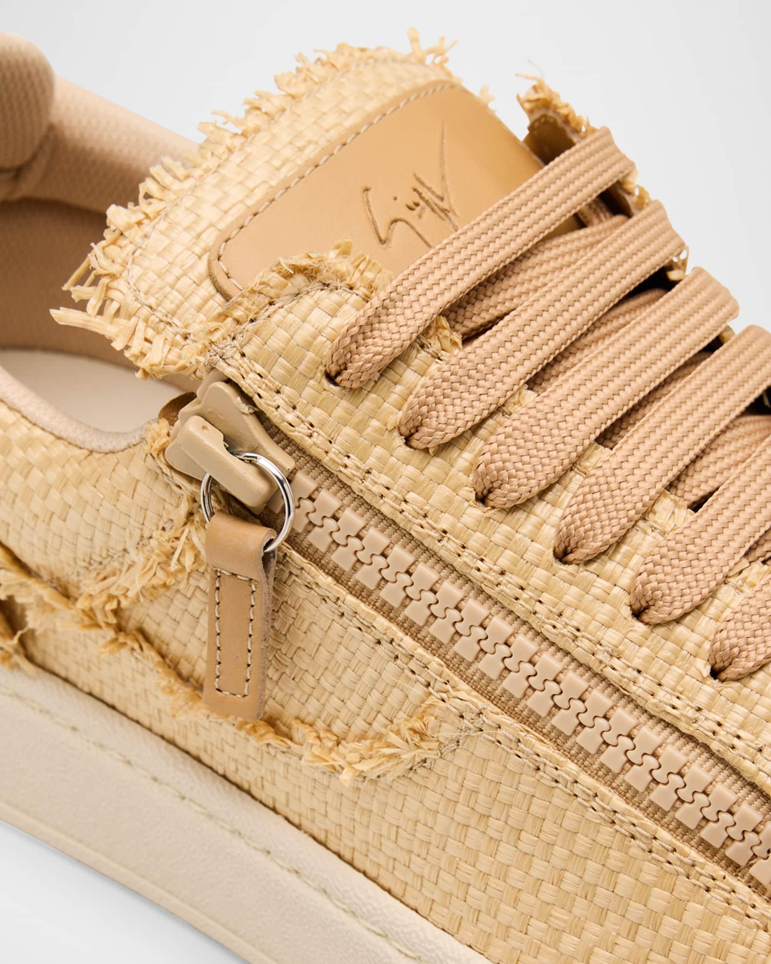 Giuseppe Zanotti "Mitha" low-top sneakers in raffia resulting in a modern yet casual finish Double zip-up vamp for a practical addition Flat heel Round toe Lace-up vamp Leather tongue label with logo signature Comfortable padded collar Leather lining Heel logo Rubber outsole Spot clean Made in Italy