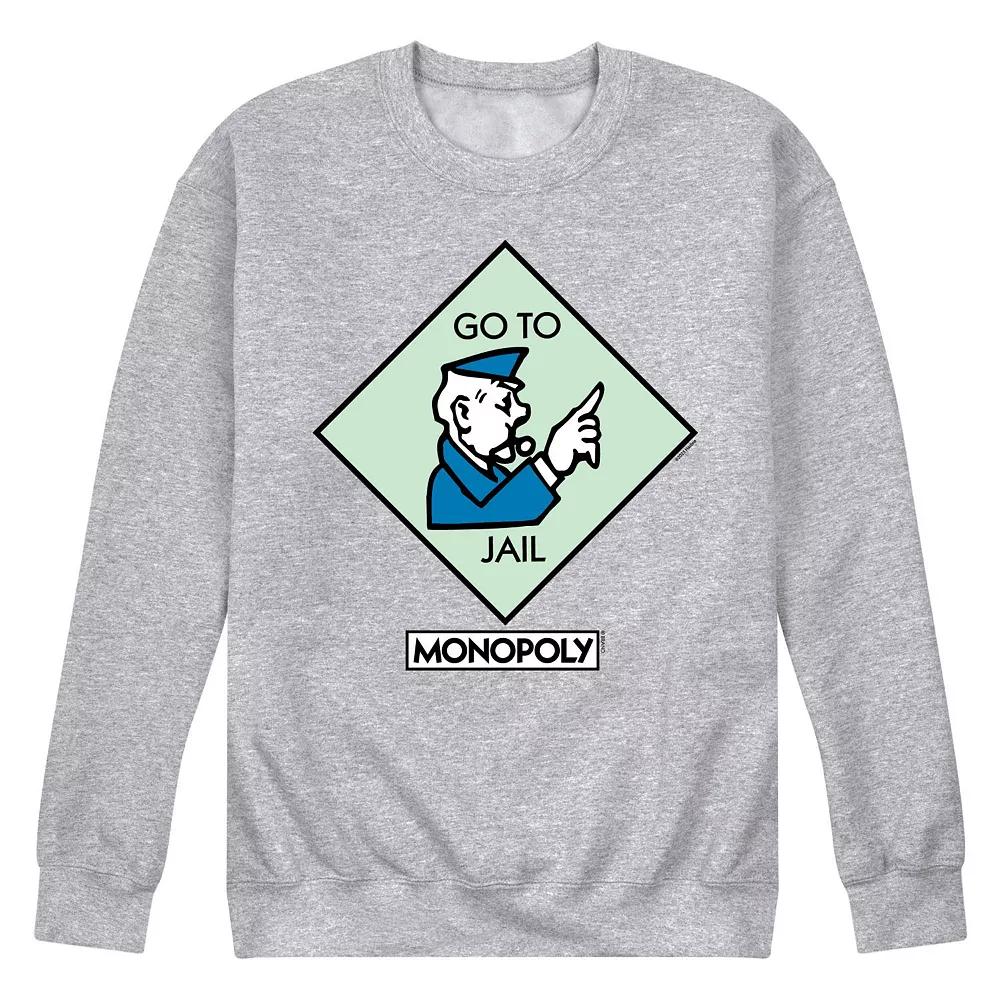 Get ready for game night with this mens Monopoly Go To Jail Square Fleece. FEATURES Crewneck Long sleeveFABRIC & CARE Solid colors: cotton; Heather colors: cotton, polyester Machine wash Imported Color: Med Grey. Gender: male. Age Group: adult. Pattern: Graphic.