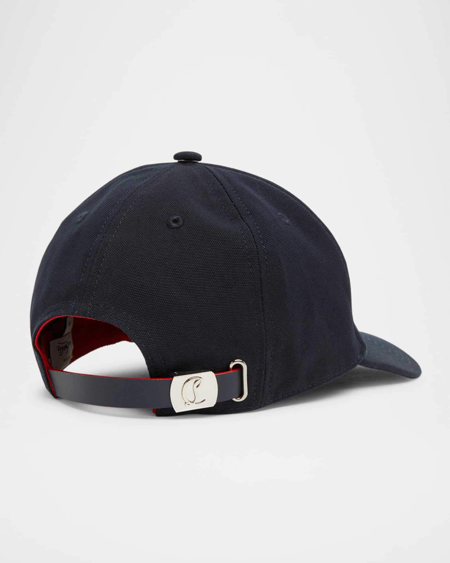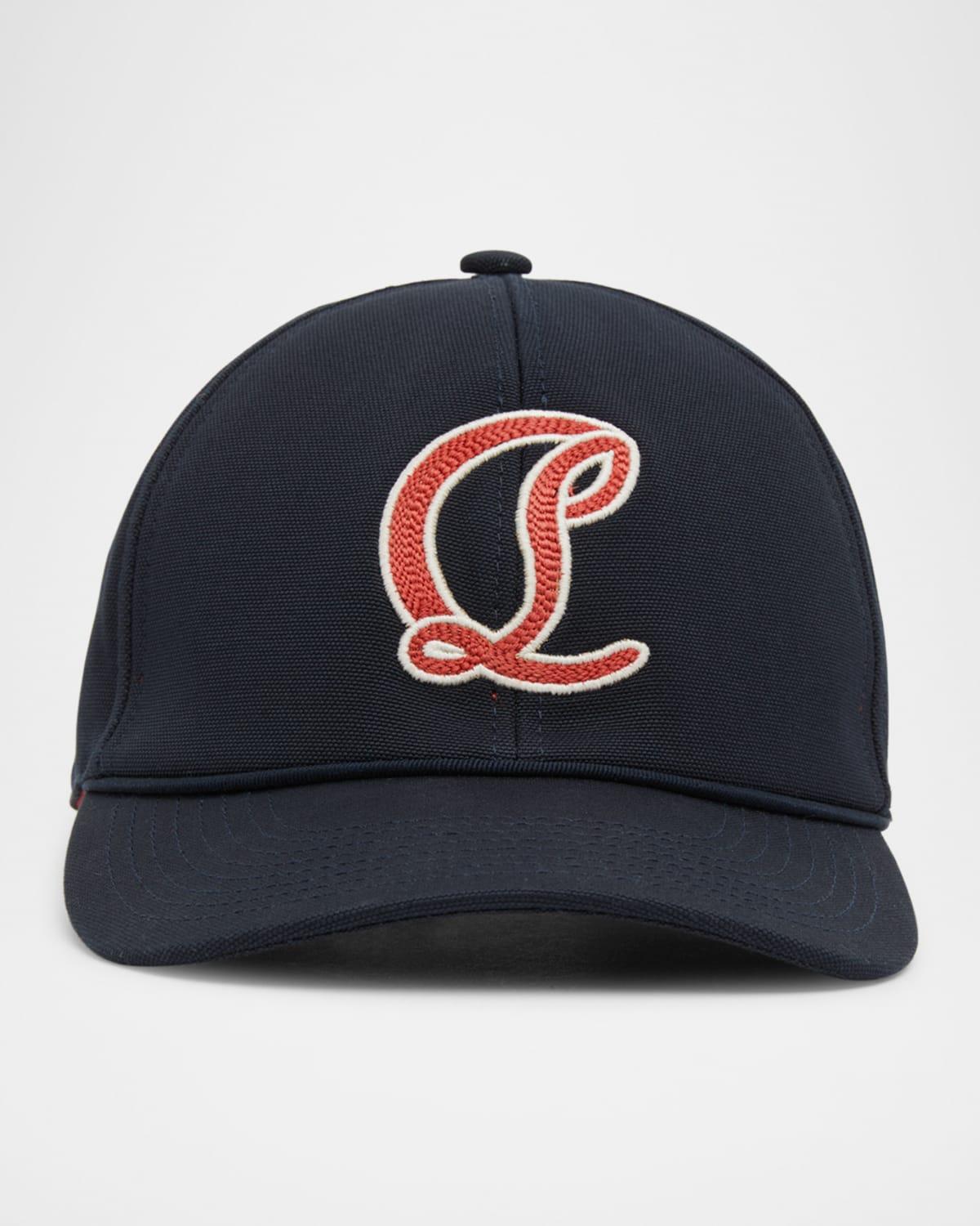 Christian Louboutin baseball cap in cotton canvas adorned with a contrast CL monogram on the front Top button Embroidered eyelets Six-panel construction Curved stitched brim Adjustable leather back strap with monogram Cotton/leather Made in Italy