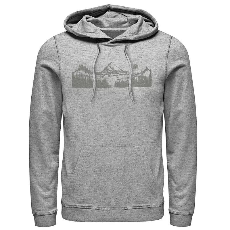 No matter where your travels lead you, youll arrive in style with this mens mountain scene hoodie. No matter where your travels lead you, youll arrive in style with this mens mountain scene hoodie. FEATURES Crewneck Long sleeves 1-pocketFABRIC & CARE Cotton, polyester Machine wash Imported Color: Med Grey. Gender: male. Age Group: adult. Pattern: Graphic. Material: Polyester|Cotton.