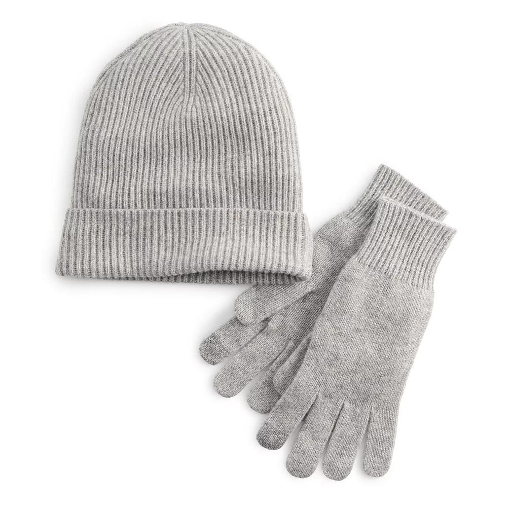 Keep nice and warm this winter with this exquisite wool blend cuffed beanie hat and gloves set from NAADAM.Keep nice and warm this winter with this exquisite wool blend cuffed beanie hat and gloves set from NAADAM.PRODUCT FEATURES Includes: beanie and gloves Beanie: foldover cuff, ribbed construction Gloves: ribbed cuffsFIT DETAILS One size fits most Beanie inner circumference: 7.75 in. Gloves hand circumference range: 7.5-8 in. Gloves palm to fingertip length: 8.1 in.CONSTRUCTION & CARE 90% wool, 10% Mongolian cashmere Hand wash; dry clean Imported Color: Cement. Gender: male. Age Group: adult.