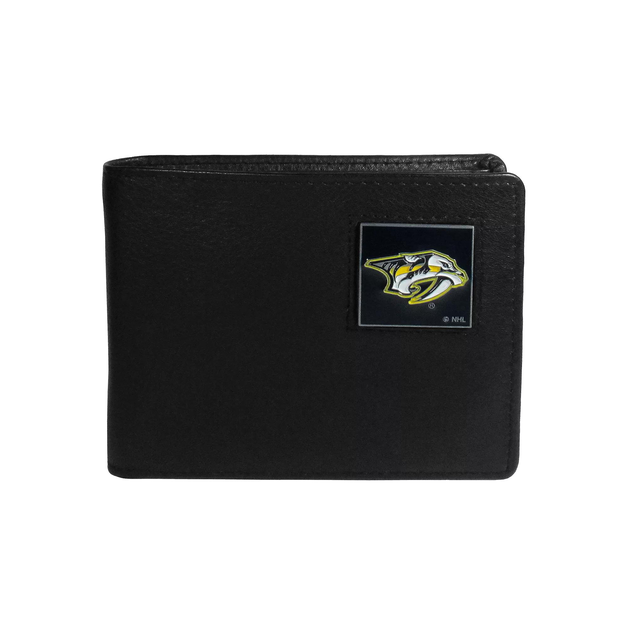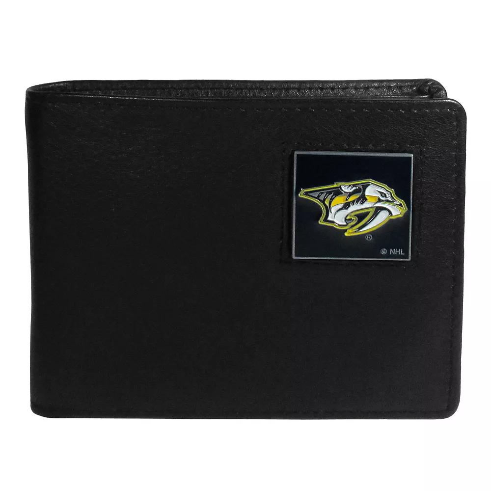 Add some value to your fan gear with this men's Nashville Predators bifold wallet. 8 card slots Billfold pocket Flip out windowed ID slot Boxed for gift giving 6" x 6" x 1.25" Genuine fine grain leather Spot clean Imported Shop our full assortment of Nashville Predators items here. When you’re a fan, you’re family! Size: One Size. Color: Black. Gender: female. Age Group: adult.