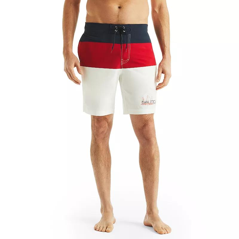 Get ready for the beach in these mens Nautica board shorts. Click on this MENS GUIDE to find the perfect fit and more!Get ready for the beach in these mens Nautica board shorts. Click on this MENS GUIDE to find the perfect fit and more!FEATURES Active stretch fabric provides easy, flexible movement all day Quick dry fabric dries in minutes for all-day comfort Mesh lining No flyFIT & SIZING 8.5-in inseam Functional drawstring Classic fitFABRIC & CARE Polyester, elastane Machine wash Imported Color: Red White Blue Block. Gender: male. Age Group: adult.