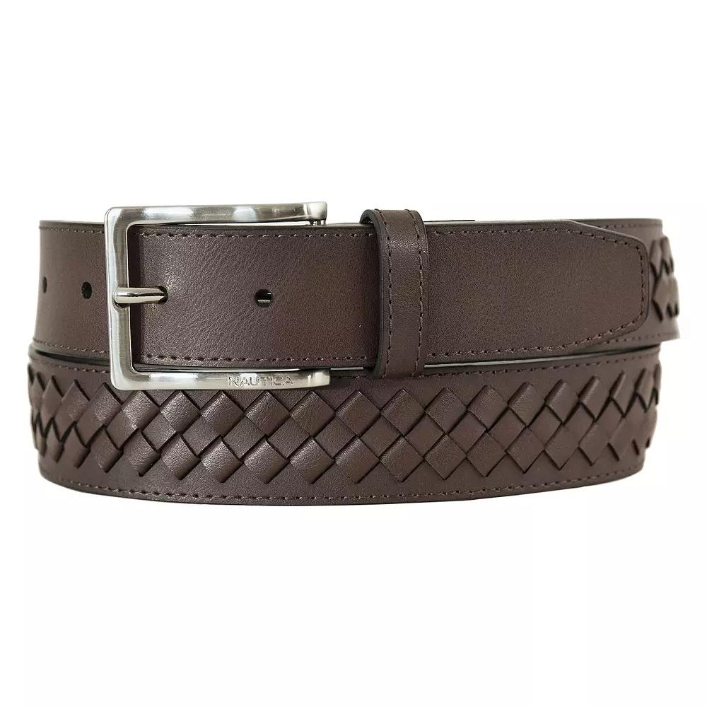 Finish off your polished look with this Men's Nautica Center Woven Leather Belt. How do you accessorize? Check out our ACCESSORIES GUIDE for essential tips to elevate your style with must-have accessories.Finish off your polished look with this Men's Nautica Center Woven Leather Belt. How do you accessorize? Check out our ACCESSORIES GUIDE for essential tips to elevate your style with must-have accessories.FEATURES Woven detail 1.4 in. wide Harness buckleFABRIC & CARE Genuine leather Spot clean Imported Size: Medium. Color: Brown. Gender: male. Age Group: adult.