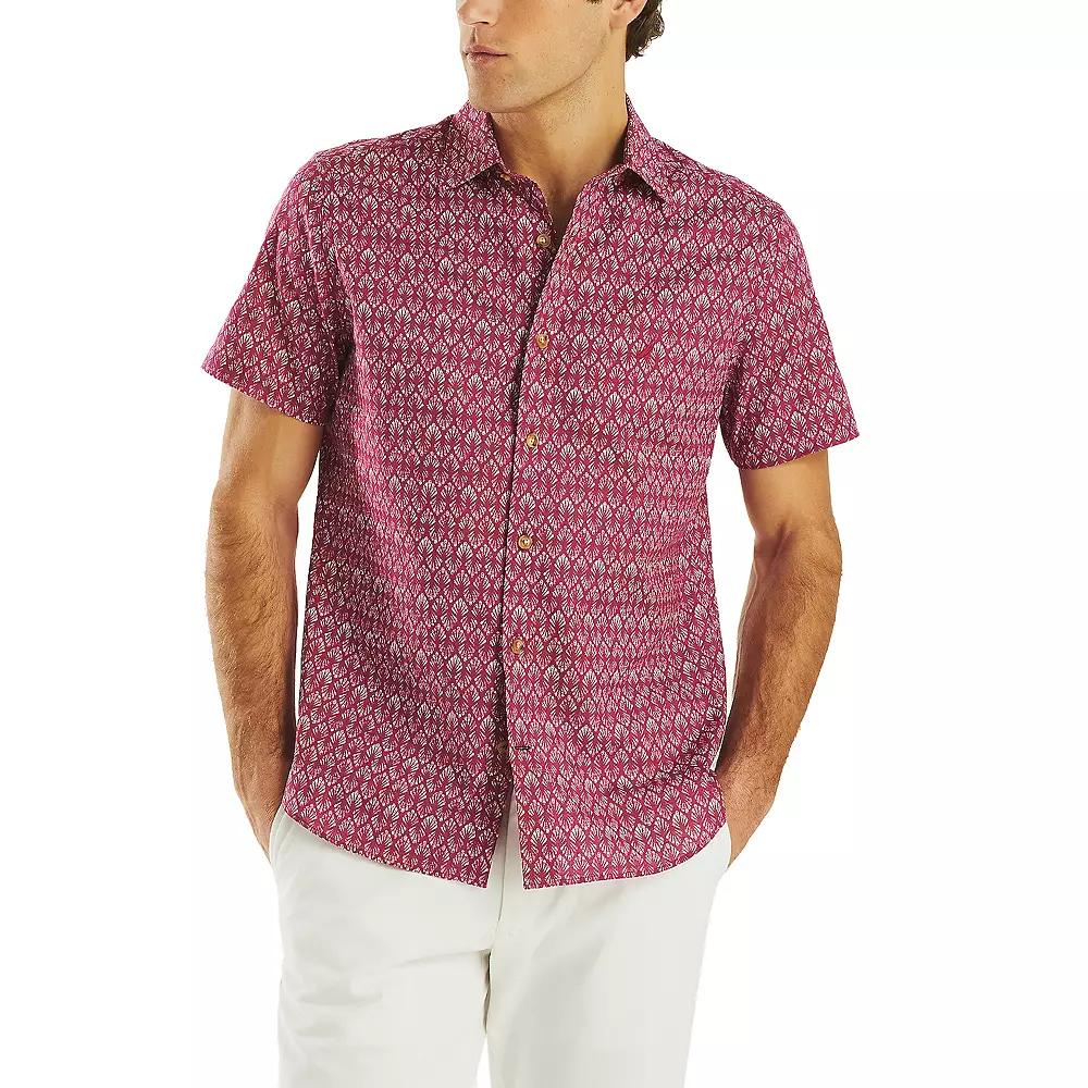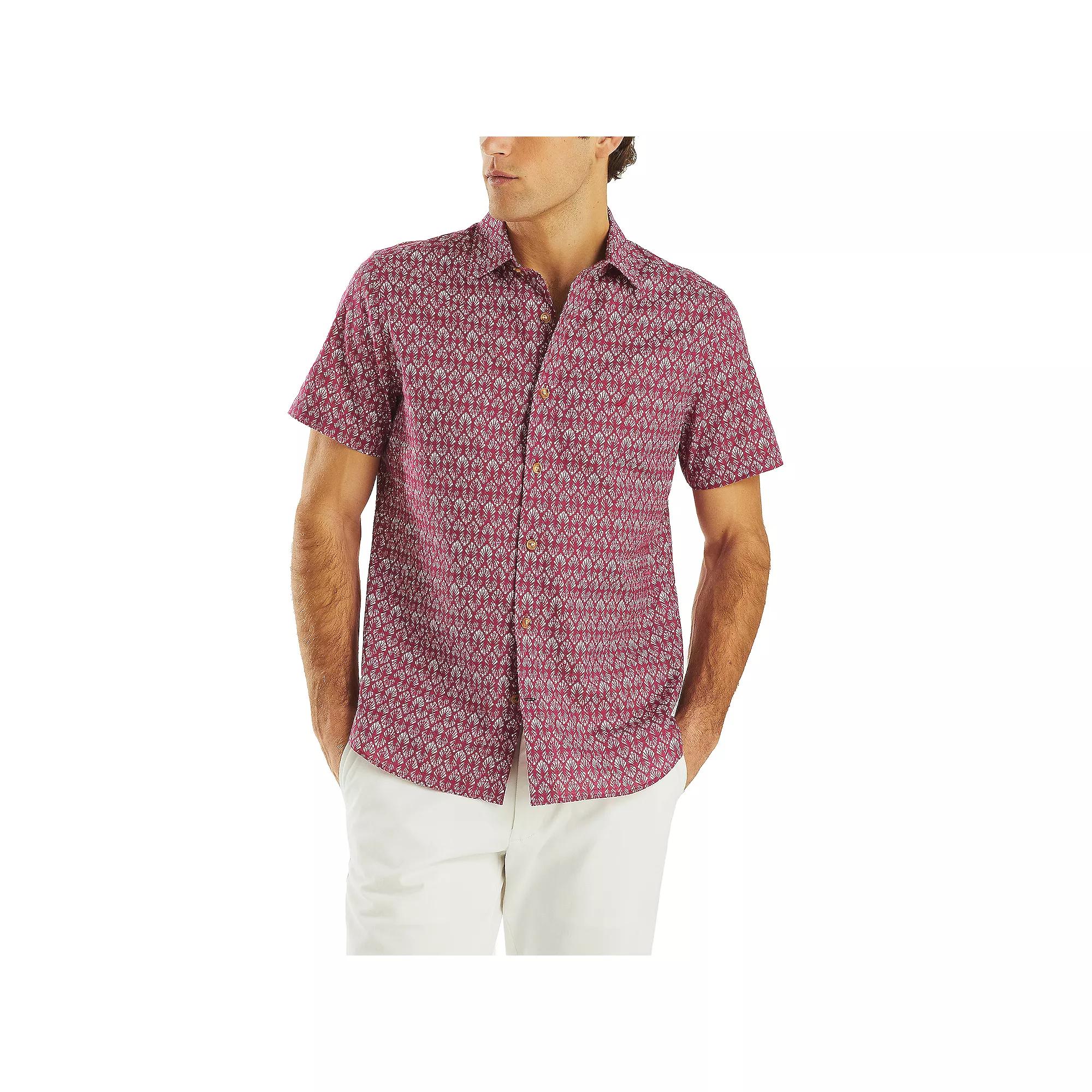 Youll love the fit and feel of this mens top from Nautica. Click on this MENS GUIDE to find the perfect fit and more!Youll love the fit and feel of this mens top from Nautica. Click on this MENS GUIDE to find the perfect fit and more!FEATURES Button-front neckline Short sleeves 1 front patch pocket LightweightFIT & SIZING Classic fitFABRIC & CARE Cotton, viscose, linen; Cotton; Linen, cotton Machine wash Imported Color: Crimson. Gender: male. Age Group: adult. Pattern: printed.